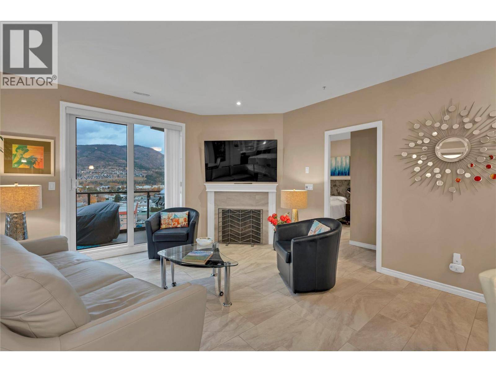 This stunning 1,370 sq ft condo in Skaha Towers was built in 2018 and upgraded from new, featuring 2 bedrooms and a generous den. Breathtaking, unobstructed views of Skaha Lake, mountains, and vineyards are captured from almost every room and can be enjoyed from two decks—one off the great room and a covered deck off the primary bedroom. The exceptional floor plan is bright and open and showcases timeless modern finishes with luxury touches. The thoughtfully designed layout begins with a welcoming designated foyer that leads to the spacious kitchen and great room, centred around a cozy custom gas fireplace—creating the perfect gathering space. Upgrades include tile flooring throughout, solid surface countertops in all areas, and a beautiful custom kitchen equipped with all the bells and whistles, including a large sit-up island. The primary bedroom features a convenient ensuite with double sinks and a walk-in shower, plus an adjoining walk-in closet. Enjoy hot water on demand, central AC, and energy-efficient heating. Immaculately maintained, this home feels brand new. The complex is just a short stroll to Skaha Beach and Park and close to amenities like Kojo Sushi, a bakery, pizza place, convenience stores, the Dragon Boat Pub, and Walmart. The unit includes secure parkade parking and a storage locker on the same floor. With no age restrictions and two pets allowed, this strata offers excellent flexibility. Built by a reputable local development company. (id:6769)