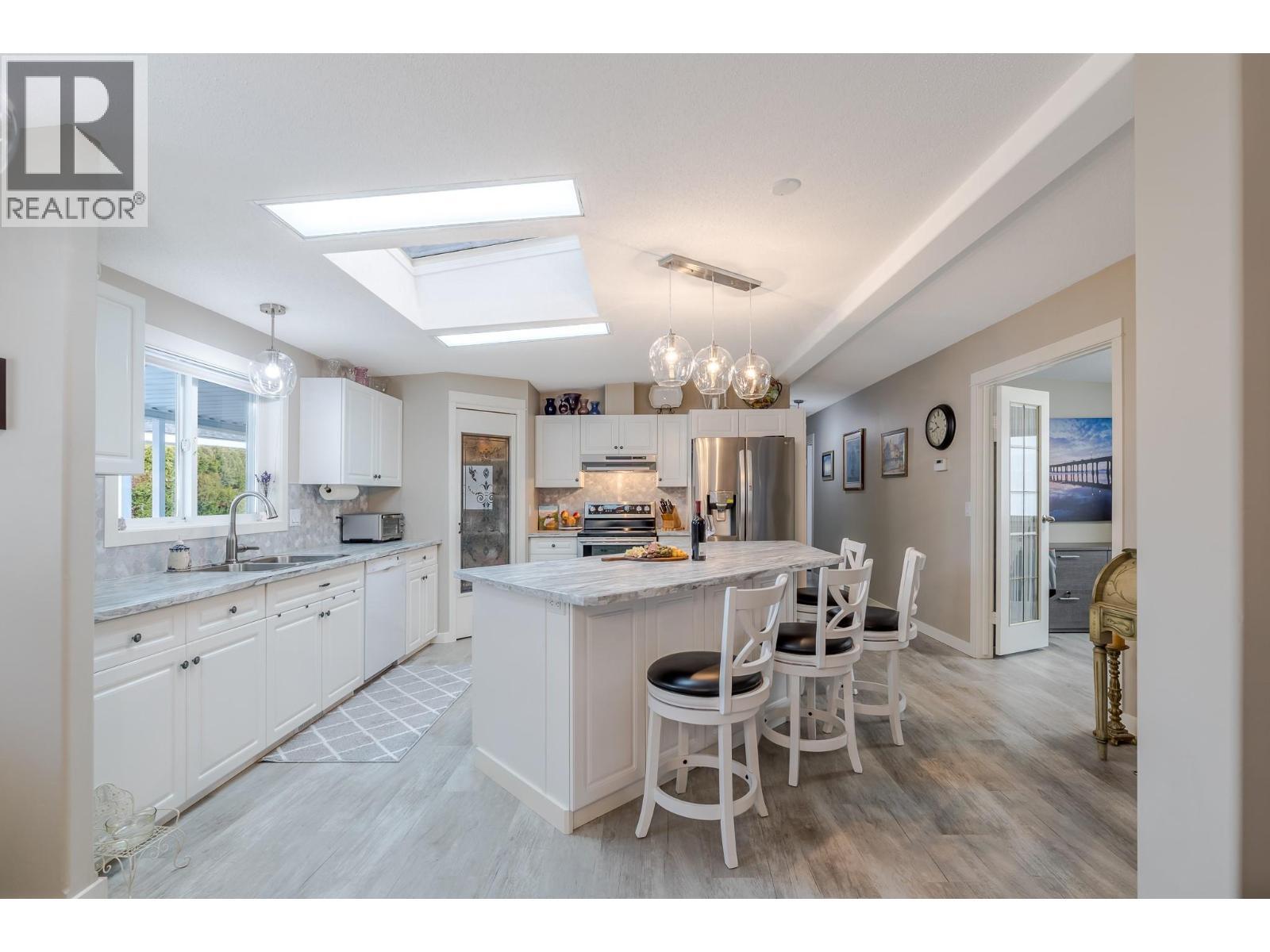 Own the Dirt at this Beautifully updated 3 Bed 2 Bath home with approx. 1500 sq ft featuring Hexagon accents throughout from the marble backsplash in the kitchen & laundry to the Hexagon pavers in the backyard. Enjoy quiet living as you explore the river across the street or walk the trail to the dam. Very spacious & open floorplan has new vinyl flooring throughout. Book your showing right away before this rare one is gone. Super low strata fee of $55. a mo. includes common area maintenance as well as a great clubhouse access that has 2 pool tables & a meeting room & kitchen upstairs with 2 BBQ's on the deck. Store your RV or boat for only $5 /month if available. Deer Park also has a fenced dog park for little Fido. Pet restrictions are 2 small dogs can be up to 16"" at the shoulders. Parking feature: Load/Unload your 32' RV (3Day max duration) & Still park your 2 allowed vehicles on the property. Please note, room sizes were physically measured & dimensions on iGuide floorplan are not correct. (id:6769)
