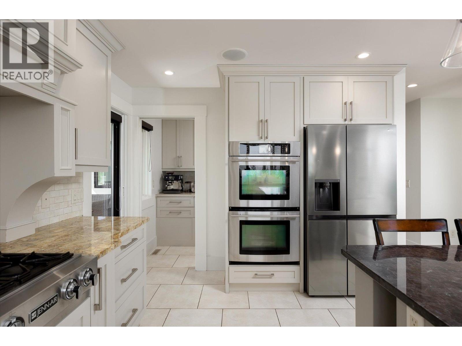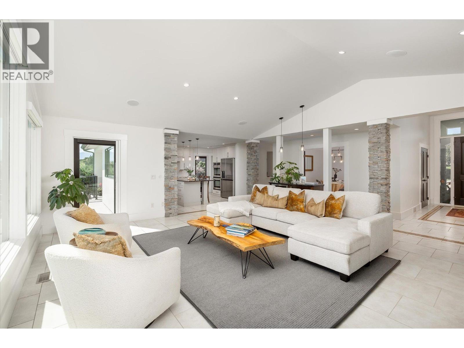 This modern home sits on a gated .75-acre private lot in a quiet, sought-after community in Lakeview Heights. Surrounded by mature, easy-to-maintain gardens and backing onto nature, the property offers stunning panoramic views of the lake, mountains, and city skyline. The expansive, well-established gardens create a tranquil setting perfect for relaxation and outdoor enjoyment. The home boasts numerous recent upgrades, including the addition of a 4th bedroom, a new furnace, a new high-efficiency heat pump, a 12kW solar panel system, and a Powerwall 3 energy storage battery. These energy-efficient features significantly reduce utility bills and contribute to a sustainable lifestyle. Inside, enjoy a warm and welcoming ambiance highlighted by an impressive fireplace and floor-to-ceiling windows framing picturesque lake, mountain, and city views. The gourmet kitchen features an oversized granite island, a butler’s pantry, and immediate access to a covered deck ideal for al fresco dining or relaxing around a natural gas fireplace. Outdoor amenities are equally impressive, including a hot tub off the primary suite, a heated 14’x36’ pool, and a private outdoor cabana bar with fridge, sink, and surround sound. Located just minutes from downtown Kelowna, golf courses, schools, and city parks, this home is ideally situated for outdoor enthusiasts with nearby hiking and biking trails in Kalamoir Park. Short walks lead to wineries, shops, pubs, cafes, and the new community centre with recreational facilities - such as tennis, pickleball, basketball courts, and a playground. Additional features include a new 4th bedroom with lakeview, private entrance lower level one-bedroom Airbnb, ideal for generating extra income, and room for a potential carriage house, perfect for multi-generational living or additional rental opportunities. (id:6769)