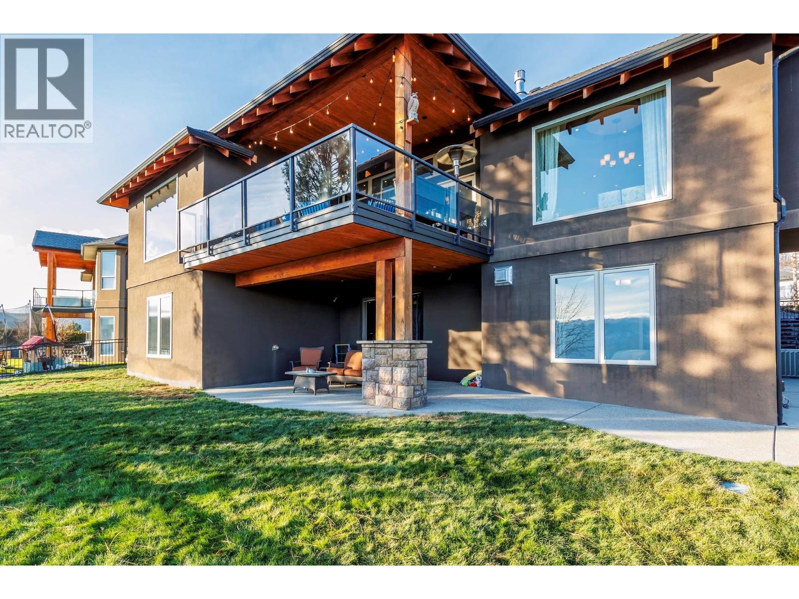 Rare Lot offering Commanding lake views and a refined, executive feel set the tone for this 5-bedroom, 4-bath single-family residence on a 0.18-acre freehold lot. Designed for both elevated everyday living and hosting at scale, the upper level features walnut hardwood floors, a striking two-sided gas fireplace, and open sight lines that extend to an upper deck with gas BBQ hookup and expansive lake views. The primary bedroom is positioned as a true retreat, with direct patio access and a spa-inspired 5-piece ensuite featuring heated floors and granite counters. A second bedroom and a heated-floor 3-piece bathroom complete the upper level, ideal for guests or home office use. The lower level is tailored for entertaining, anchored by a gas fireplace, wet bar, fridge and freezer combination, wine fridge, and a dedicated wine room. A media area with an upgraded screen and projector creates a natural gathering space, while three additional bedrooms and two bathrooms provide excellent separation for family or visitors. Walk out to the lower patio with hot and cold hose bib and gas line for seamless outdoor functionality. An insulated and heated 700+ sq.ft. three-car garage, along with parking for up to six vehicles on the driveway. A separate workshop is located beneath the garage and is accessed exclusively from the exterior along the side of the home. This home delivers presence, comfort, and flexibility in a premier West Kelowna setting. (id:6769)