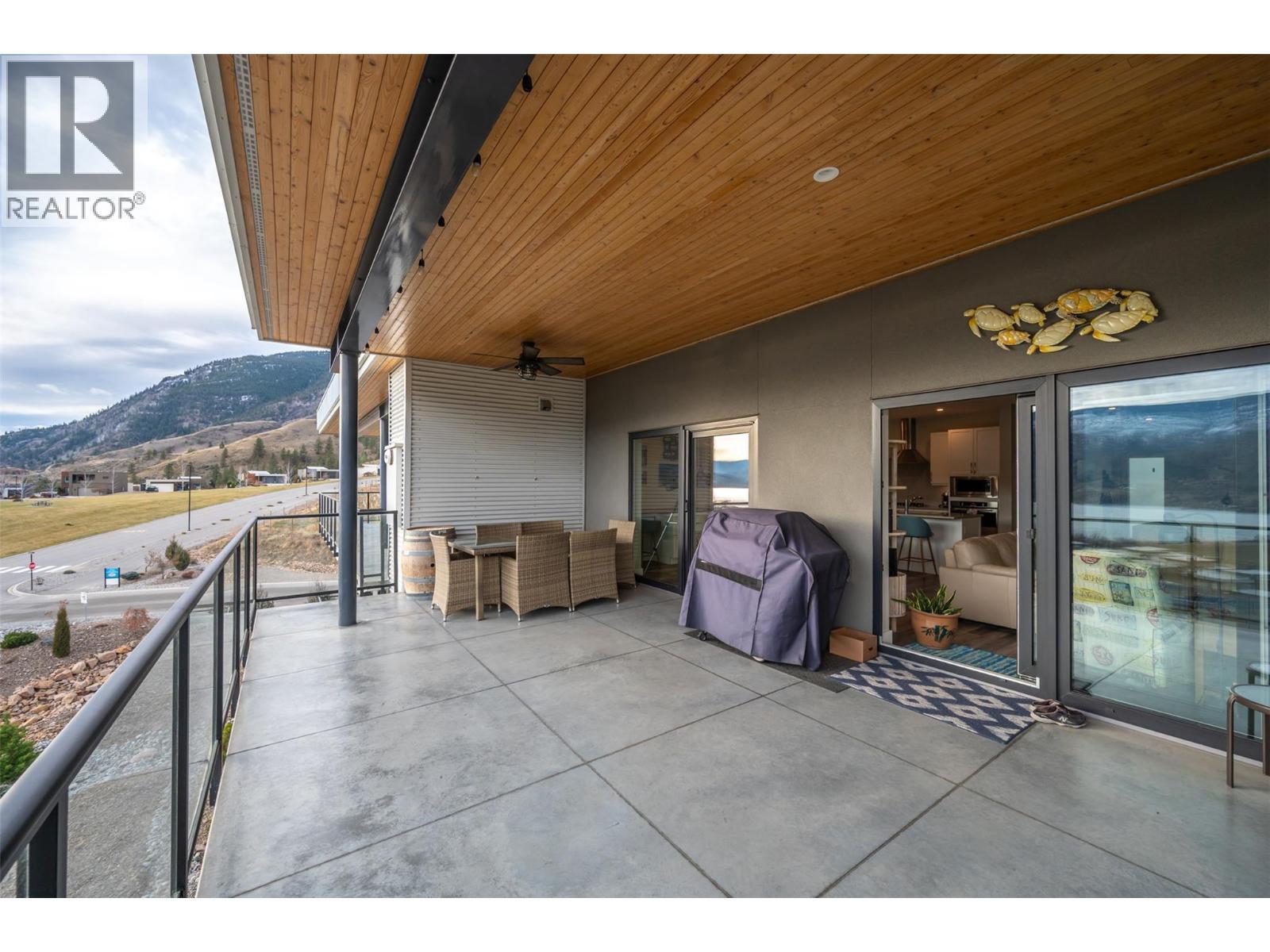Welcome to Skaha Hills, where luxury living meets breathtaking views. This spacious 1,446 sq ft top-floor condo offers 2 bedrooms plus a den, thoughtfully designed to maximize comfort, space, and natural light. Large windows frame stunning views of Skaha Lake and the airport, filling the home with sunshine and creating a seamless indoor-outdoor connection. Step onto the massive private deck, perfect for entertaining or relaxing year-round, complete with an outdoor gas fireplace, an ideal spot to enjoy sunsets and lake views. This home includes a single detached garage plus an additional parking stall, offering convenience and plenty of space for vehicles and storage. Residents of Skaha Hills enjoy access to an impressive clubhouse featuring a swimming pool, hot tub, fully equipped gym, tennis/pickleball courts, and a stylish lounge, offering resort-style amenities right at home. Added value with no GST or Property Transfer Tax payable, providing significant savings for buyers. This is a rare opportunity to own a top-floor home in one of the most sought-after developments in the area. (id:6769)
