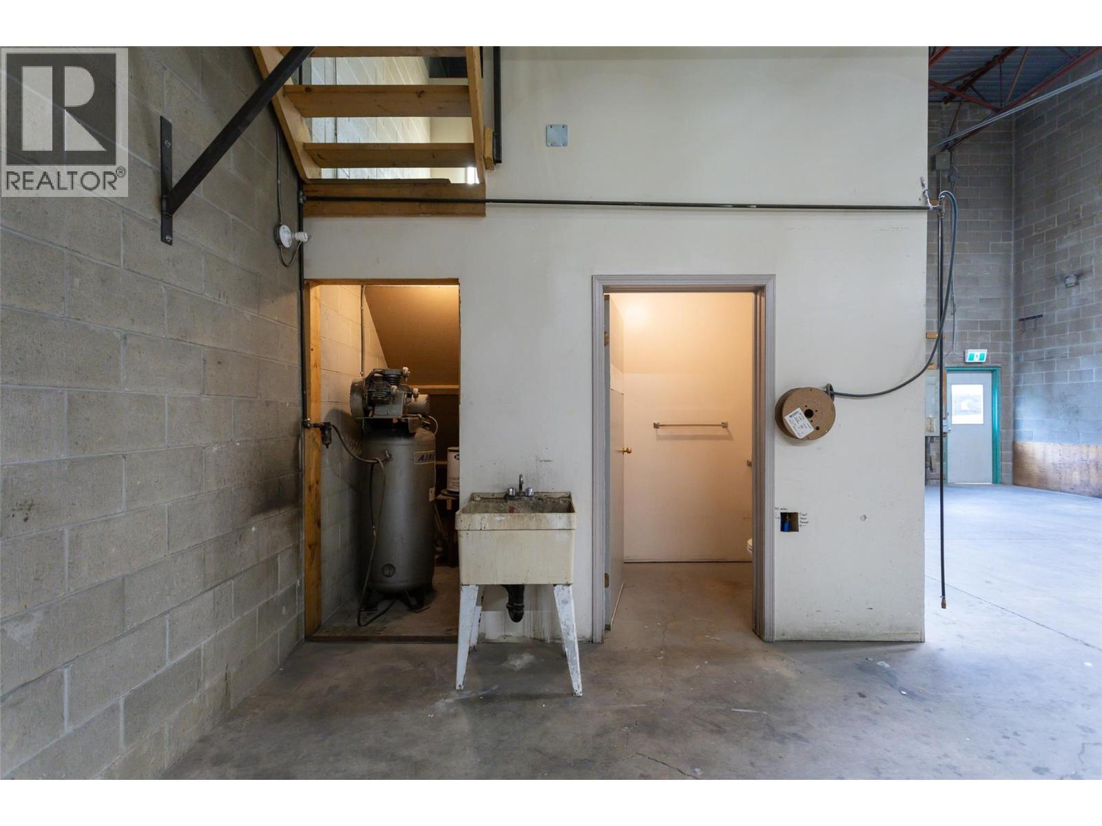 Fantastic lease rate! Excellent light industrial unit with concrete mezzanine, bathroom and office space. Unit has a compressor with good distribution lines. Large overhead door and two man doors on front of unit. Very easy and convenient access.. Heated via baseboards and overhead ceiling unit. (id:6769)