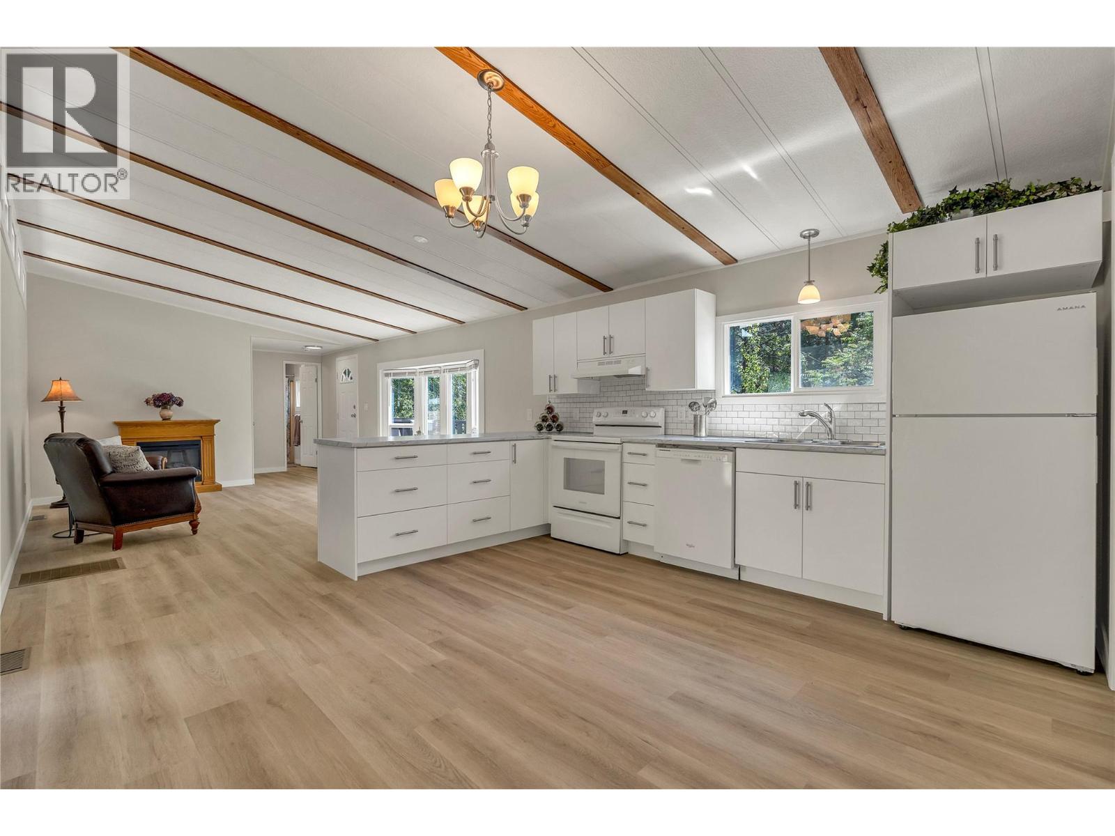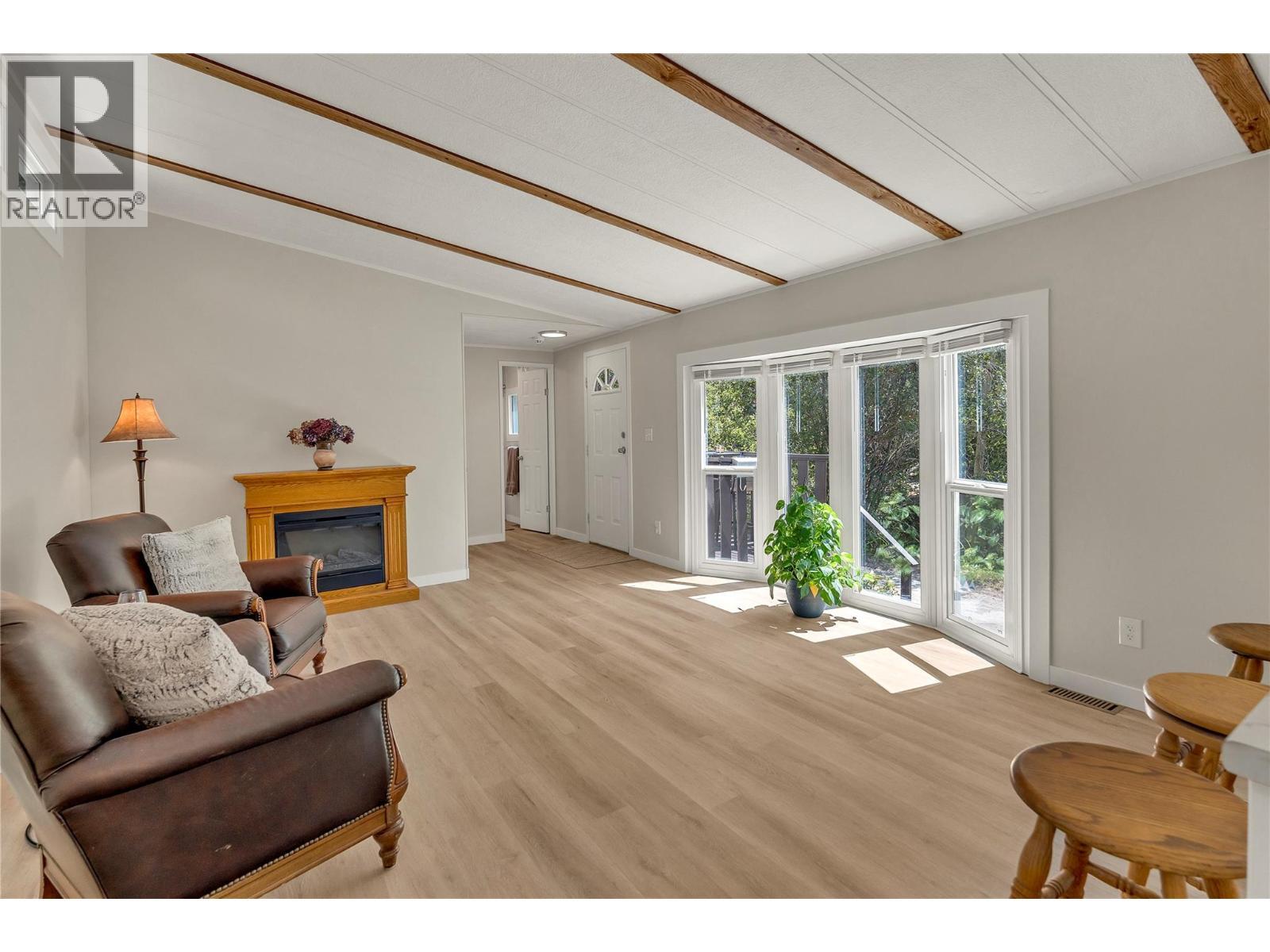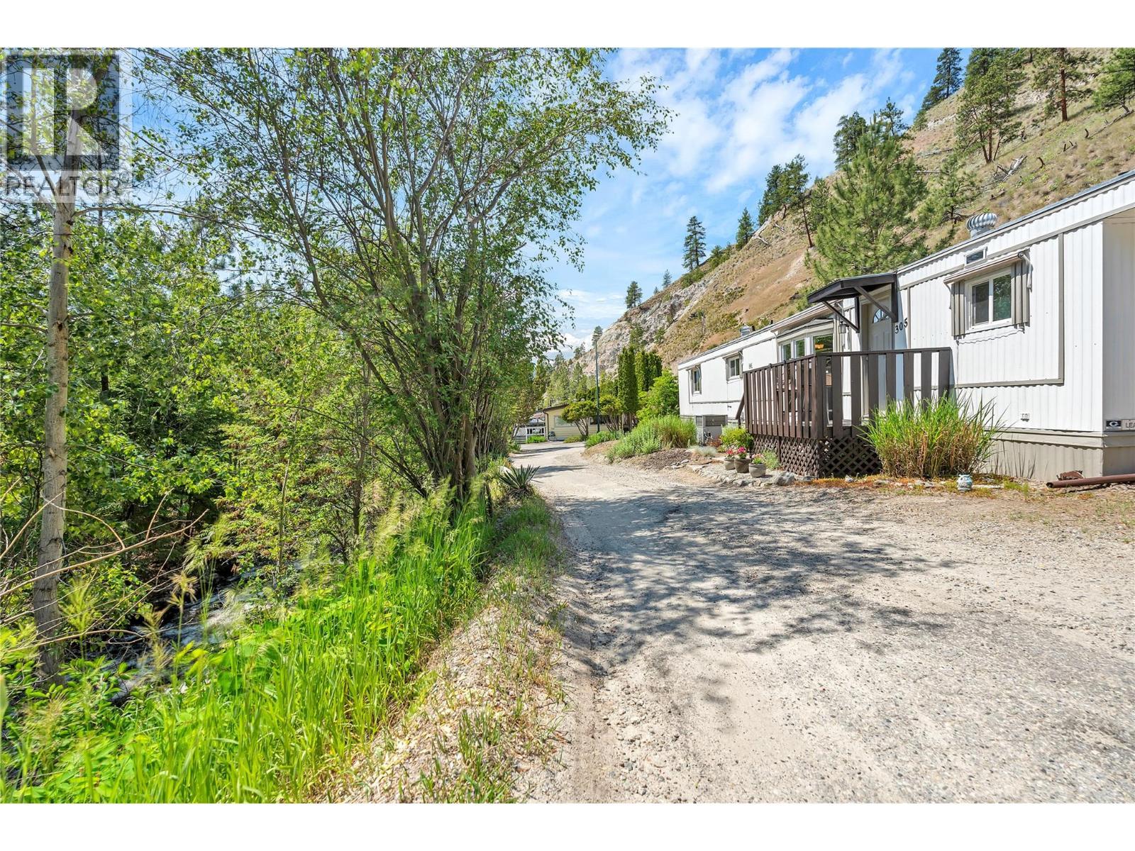Welcome to Pleasant Valley, one of the most unique mobile home parks in the Okanagan—just a short, level drive to the heart of Penticton. Surrounded by nature and bordered by the ever-flowing, beautiful Penticton Creek, this park offers a peaceful setting unlike any other. This substantially renovated 3-bedroom, 2-bathroom home is tucked away in a private, low-traffic area across the creek, where the soothing sound of water and the natural surroundings create a serene atmosphere. The home feels far from a typical mobile, with its high shed-style ceilings, abundant natural light, and absence of narrow hallways. Inside, the impressive renovations include a new kitchen and bathrooms, updated flooring throughout, fresh interior and exterior paint, modern light fixtures, and plumbing. Outside, the spacious yard is ideal for outdoor living and hobbies, featuring a large covered deck, a flat and private backyard, and even a small patio area overlooking the creek. There is ample parking, and the park also offers RV parking (subject to availability and a monthly fee). Pleasant Valley is a well-managed 55+ community that allows two pets (size restrictions apply). (id:6769)