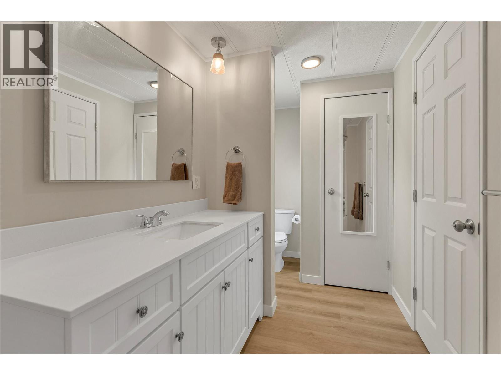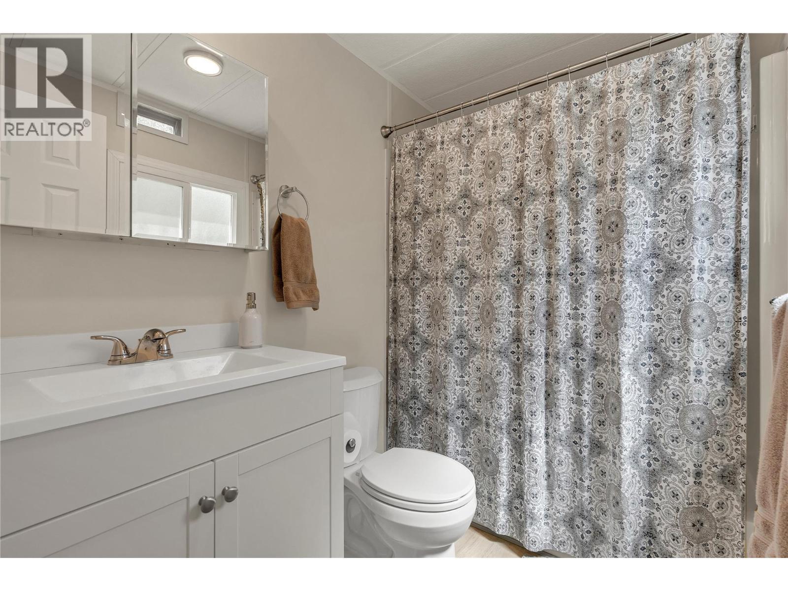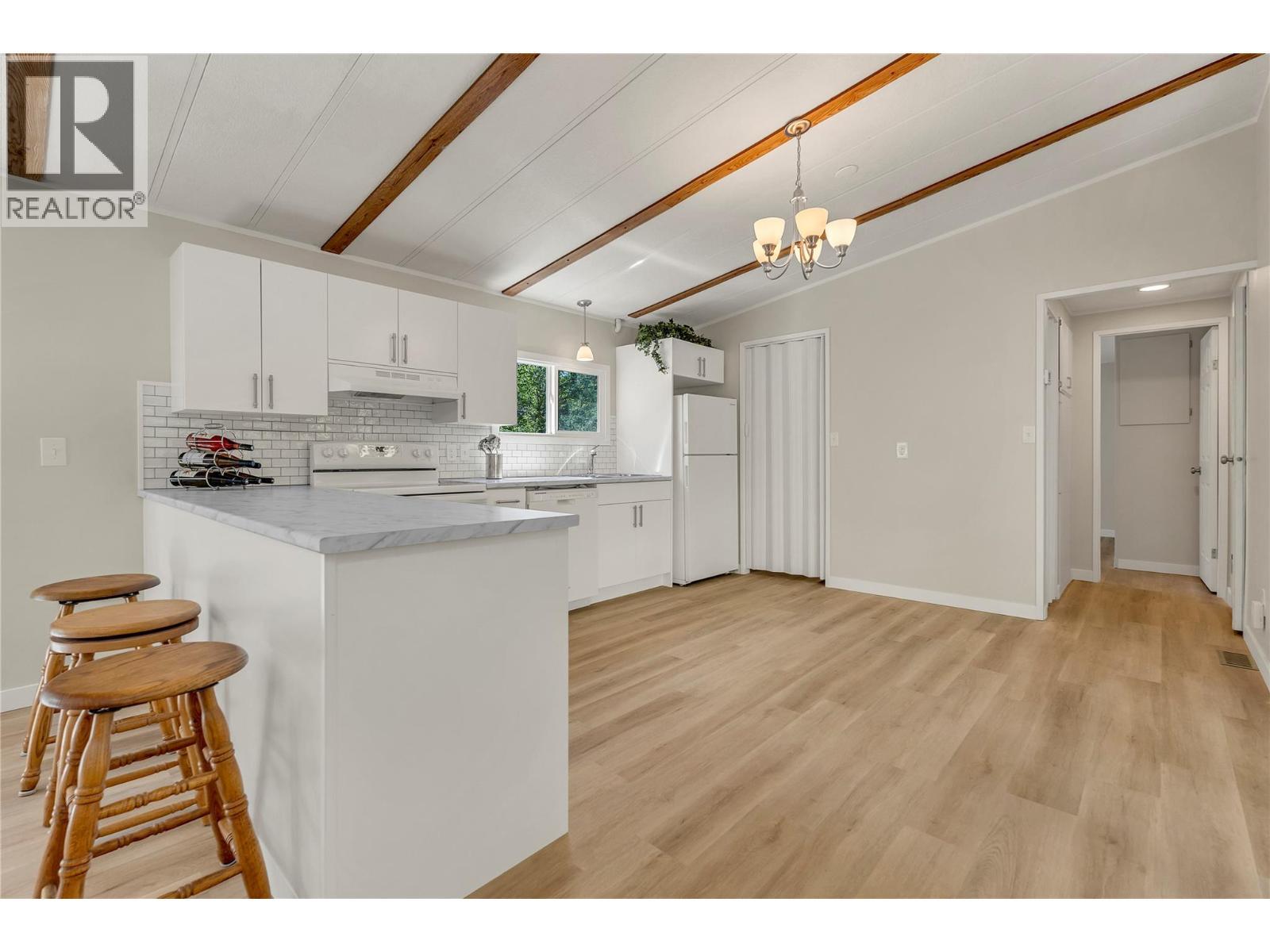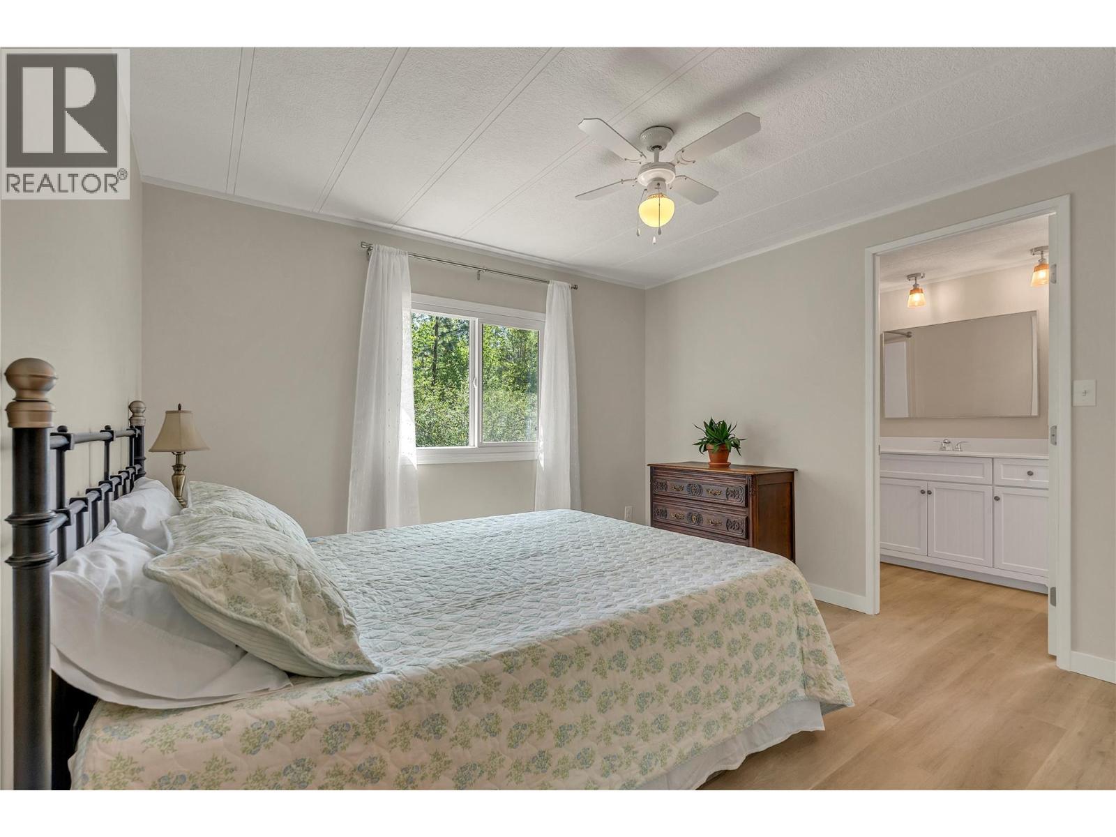 Welcome to Pleasant Valley, one of the most unique mobile home parks in the Okanagan—just a short, level drive to the heart of Penticton. Surrounded by nature and bordered by the ever-flowing, beautiful Penticton Creek, this park offers a peaceful setting unlike any other. This substantially renovated 3-bedroom, 2-bathroom home is tucked away in a private, low-traffic area across the creek, where the soothing sound of water and the natural surroundings create a serene atmosphere. The home feels far from a typical mobile, with its high shed-style ceilings, abundant natural light, and absence of narrow hallways. Inside, the impressive renovations include a new kitchen and bathrooms, updated flooring throughout, fresh interior and exterior paint, modern light fixtures, and plumbing. Outside, the spacious yard is ideal for outdoor living and hobbies, featuring a large covered deck, a flat and private backyard, and even a small patio area overlooking the creek. There is ample parking, and the park also offers RV parking (subject to availability and a monthly fee). Pleasant Valley is a well-managed 55+ community that allows two pets (size restrictions apply). (id:6769)