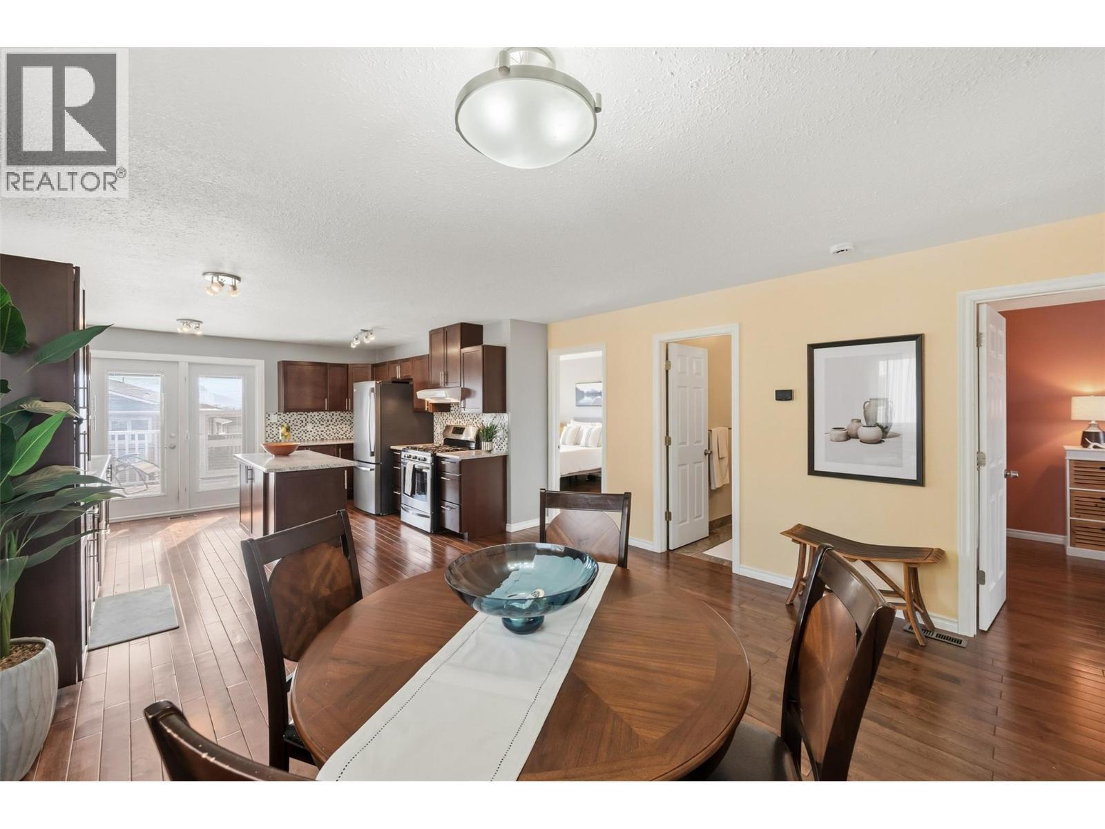 This updated, 2+1 bedroom, half duplex is ideal for first time buyers, a growing family or retirees. Alongside the generous driveway, the beautiful, desert-scaped front yard features massive, low maintenance cacti. Just a few steps up from the split level side entry, you'll find a bright, updated, open concept living room and spacious kitchen-dining combination. Oversized windows in the living and dining rooms, and a double French door walkout from the kitchen flood this space with natural light. Ideal for entertaining, the main level features continuous, chocolate brown hardwood flooring, abundant matching cabinetry including a kitchen island, and a gas range. Delivering easy, one-level living, the main floor is completed by two large bedrooms with generous closets, flanking a 5 piece bath with elegant double vanity and deep soaker tub. Downstairs you'll find a generous home office/den that could also serve as a guest bedroom, and a massive finished recreation room, both with practical vinyl flooring. This level also features a 4 piece bathroom with double vanity and glass enclosed corner shower, along with spacious, finished laundry, and unfinished utility and storage rooms. At the rear of this home the kitchen walks out to the generous, rear deck with gas BBQ and gate ideal for containing toddlers and pets. The rear yard is fully fenced with low maintenance gravel ground cover and features a raised gardening bed. Dimensions are approximate. Buyer to confirm if important. (id:6769)