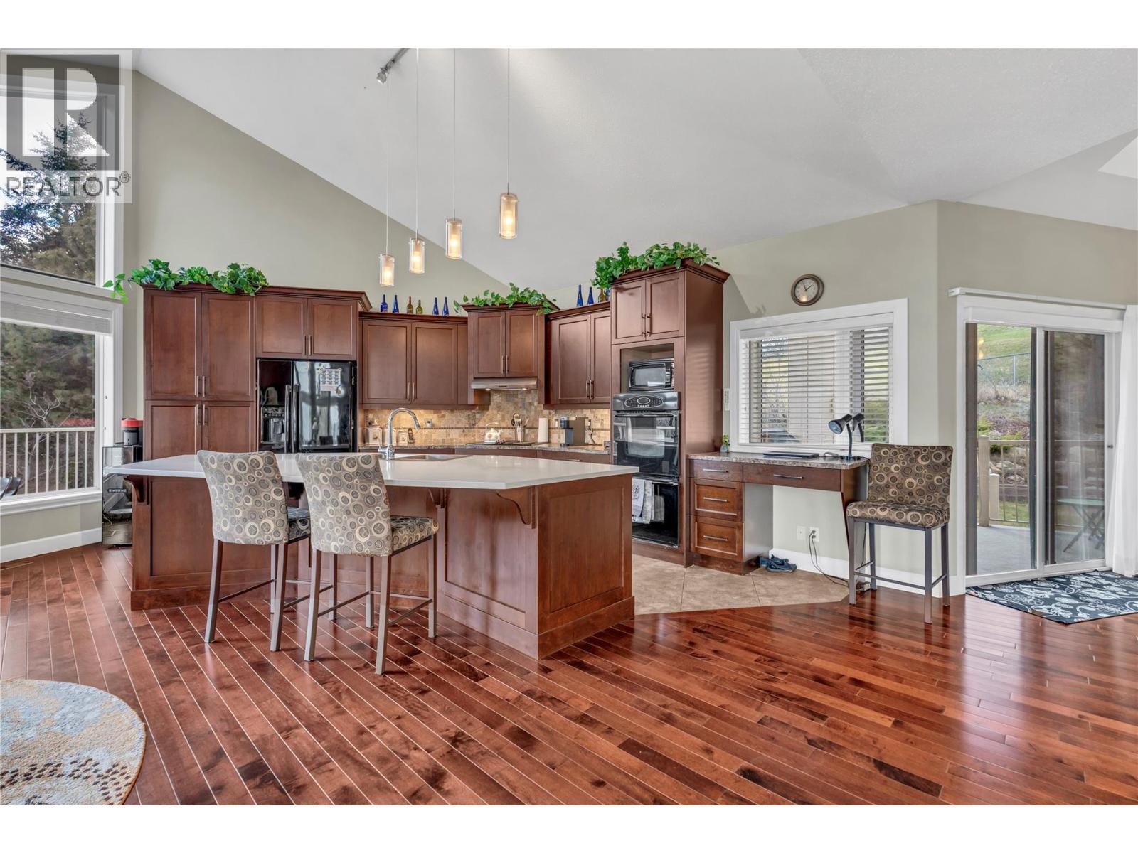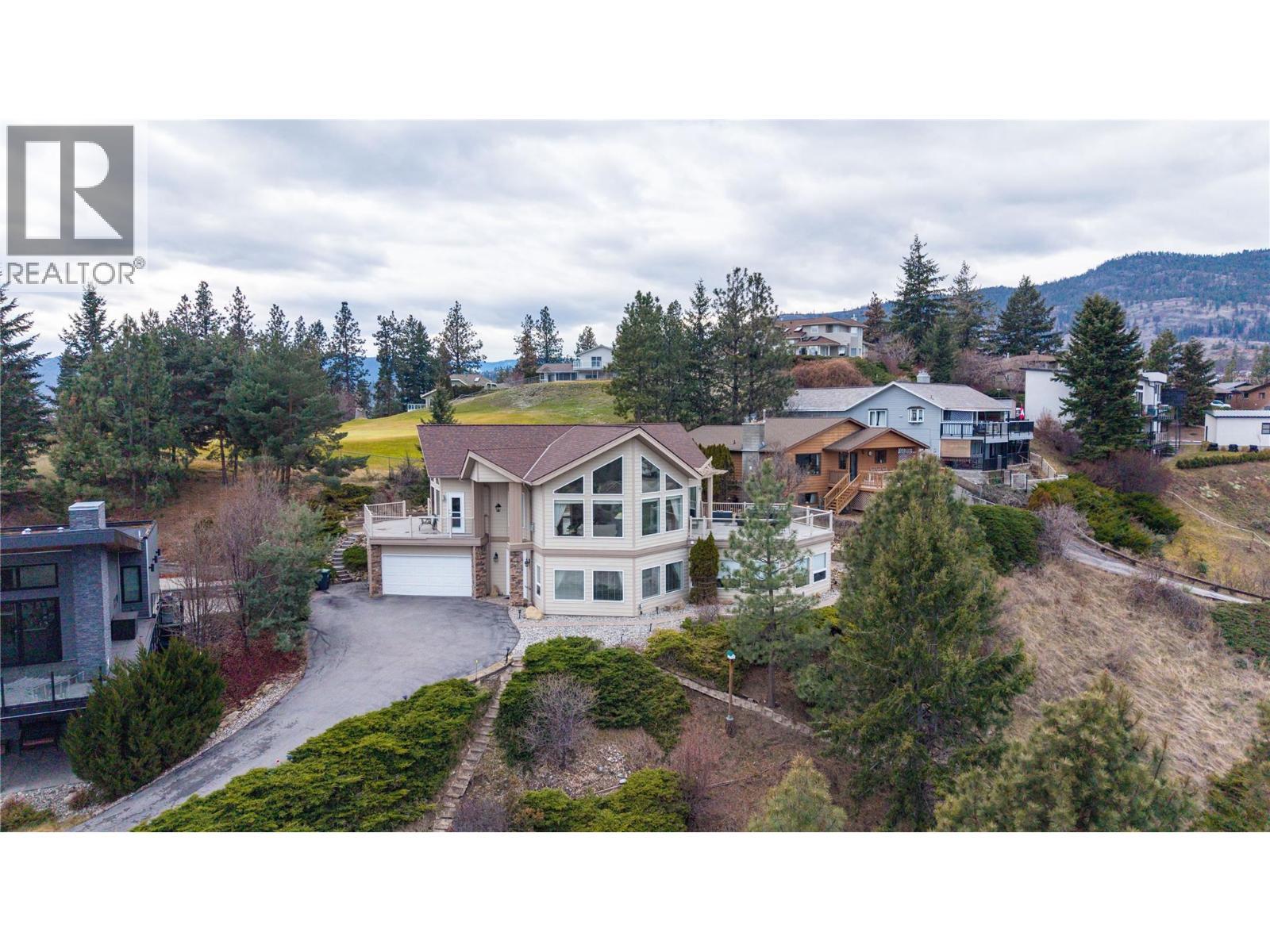 Panoramic lake and mountain views highlight this spacious two-level executive home in the sought-after Sumac Ridge Estates—an established golf course community just minutes to Okanagan Lake and downtown Summerland. Designed for comfortable living and easy entertaining, the bright open main level features vaulted ceilings, expansive upgraded windows, solid hardwood flooring, and a natural gas fireplace. The gourmet kitchen is equipped with granite countertops, a gas range, and generous prep space, flowing seamlessly into the dining and living areas. Enjoy entry level access with a grand foyer, lakeview office area, Master bedroom with beautifully updated ensuite, 2 bedrooms and 2nd full bathroom. The Upper level provides excellent flexibility with a den, dedicated office/study area, recreation room with fitness space.. massive open concept kitchen dining, living area with vaulted ceilings and unbelievab;e panoramic lakeviews, plus a massive deck. Step outside to a large view deck with natural gas BBQ outlet—perfect for relaxing after a round of golf while taking in the scenery. Low-maintenance perennial gardens, a fenced dog run, and a private driveway leading to the double garage provide both convenience and privacy. A compelling opportunity to secure a lakeview home in one of Summerland’s most desirable communities. Quick possession possible. (id:6769)