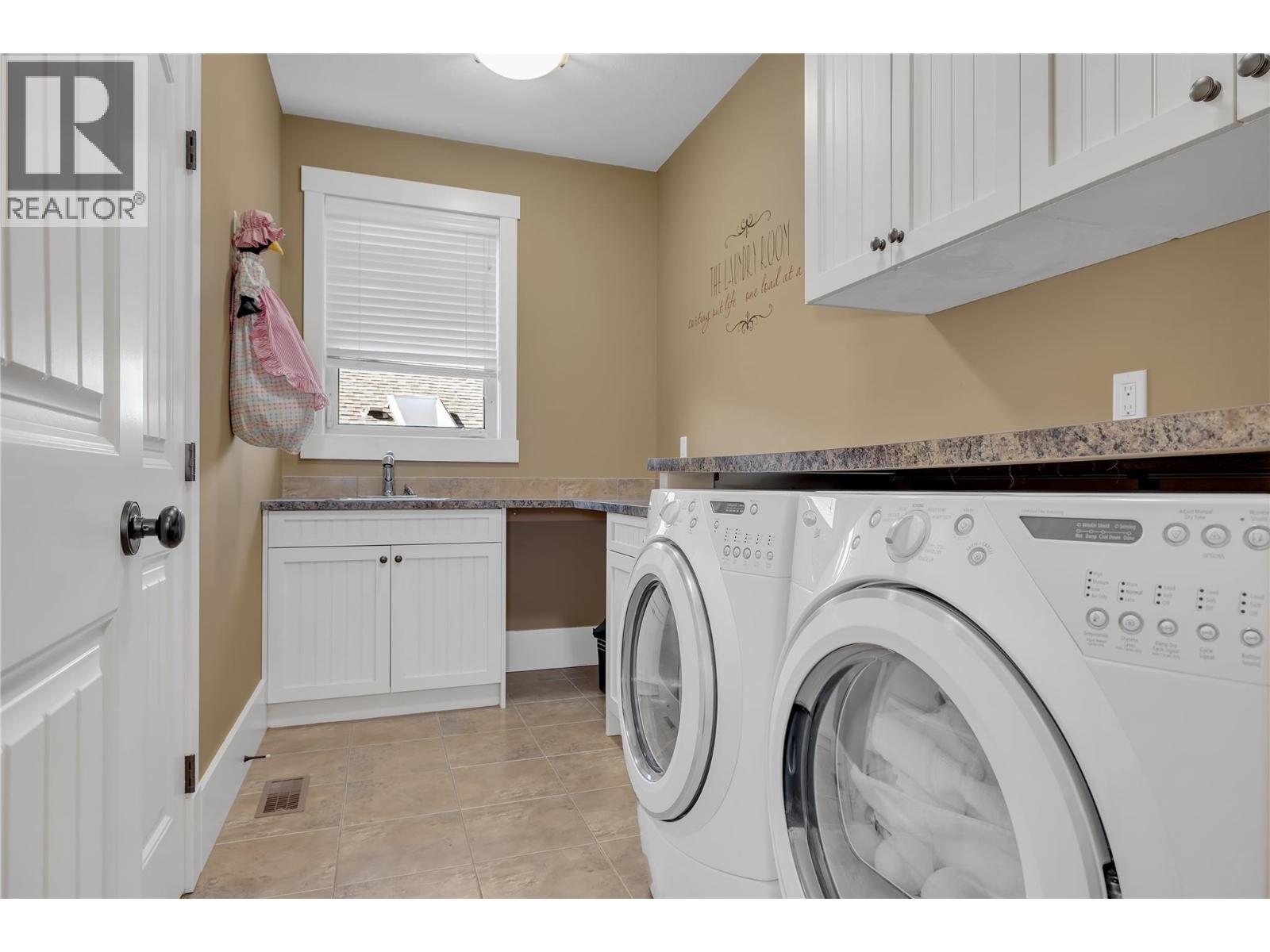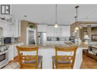 Experience refined living in this stunning executive bungalow in beautiful Lakeview Heights, where timeless design meets sweeping lake and mountain vistas. Crafted with Brazilian hardwood flooring, custom millwork, granite surfaces, and elegant coved ceilings, this 4-bedroom, 4-bathroom residence showcases quality at every turn. The chef-inspired kitchen features an oversized island with breakfast seating, a walk-in pantry, and abundant natural light that frames the breathtaking views beyond. Inviting fireplaces warm both the main floor and lower-level living spaces, creating an atmosphere of comfort and sophistication. The serene primary suite offers a spa-like escape with a bay-window soaking tub overlooking the lake, glass-enclosed walk-in shower, double vanity, generous storage, and a dedicated makeup station. The lower level is ideal for guests or entertaining, complete with a spacious bar area, two sizeable bedrooms with private ensuites, and access to a second covered deck. Outdoor living is equally impressive, with a covered front patio and multiple decks designed for year-round enjoyment. A perfect blend of elegance, practicality, and panoramic beauty, this exceptional home delivers the ultimate Okanagan lifestyle. (id:6769)
