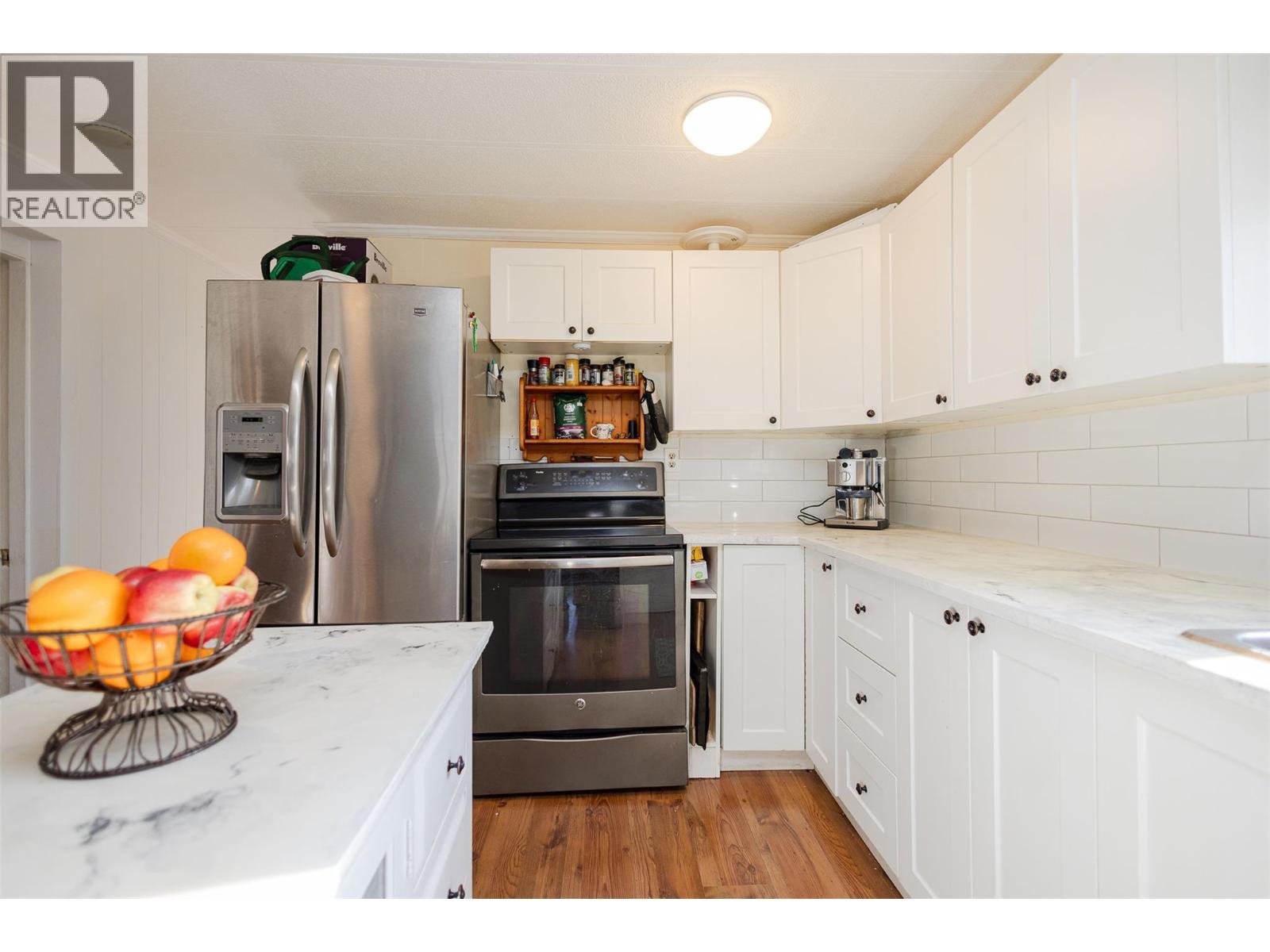 This beautifully maintained 3 bedroom, 2 bathroom home offers the perfect blend of comfort, functionality, and outdoor living — all set against scenic mountain views and exceptional privacy. Step inside to an inviting layout featuring a cozy living space centered around a brand new WET-certified wood-burning stove, creating warmth and ambiance throughout the cooler months. The kitchen has been thoughtfully upgraded with a brand new GE Profile 6-burner convection oven and a stainless steel GE refrigerator, offering both performance and style for those who love to cook and entertain. Major updates provide peace of mind, including a 6-year-old roof and hot water tank. Where this property truly shines is outdoors. The private yard has been transformed into a functional oasis complete with: A covered deck with a brand new 12 ft gazebo Raised garden beds Two storage sheds — one equipped with 100 amp power, ideal for a workshop, hobby space, or additional storage No rear neighbours, backing onto a quiet gravel area with gated access Mature trees adding natural privacy and character Westview Village remains one of West Kelowna’s most sought-after manufactured home communities due to its unbeatable central location — just minutes to schools, transit, golf, restaurants, shopping, beaches, and Okanagan wineries. (id:6769)