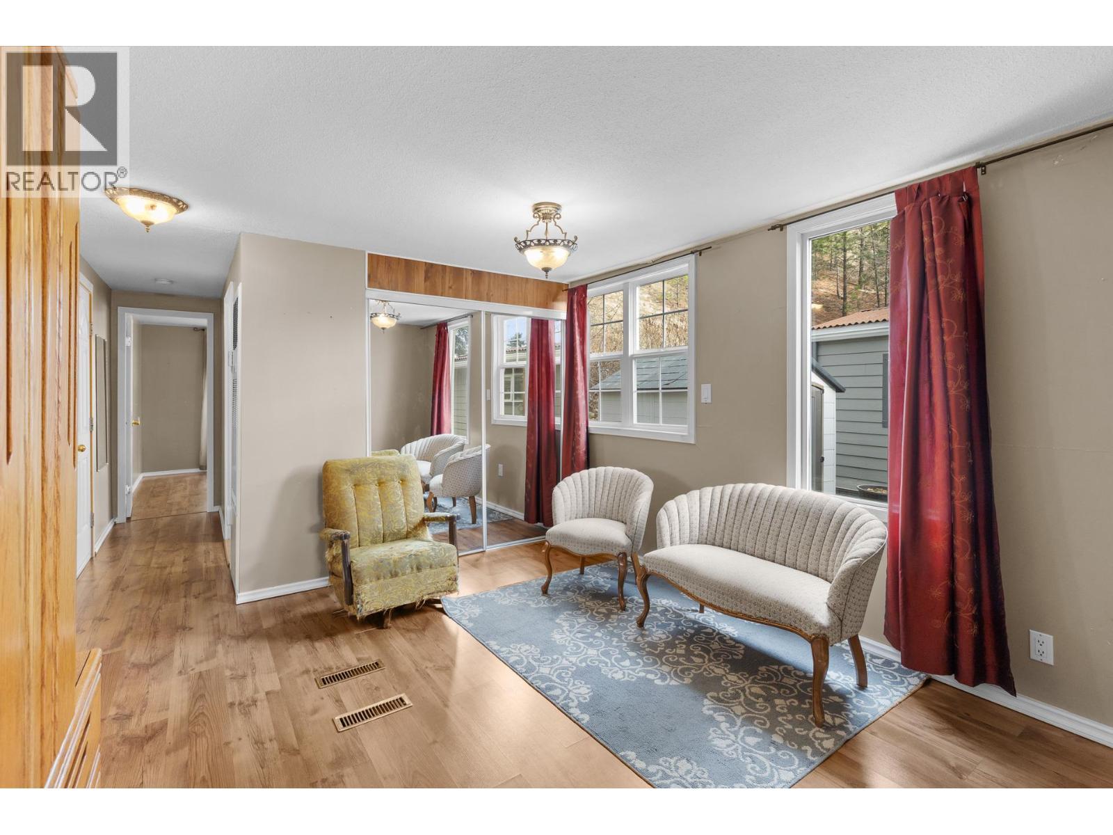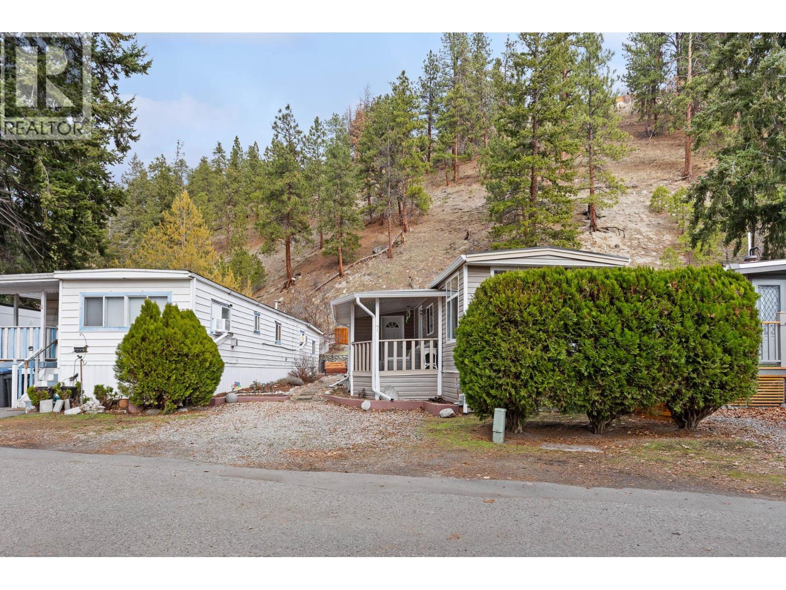 Welcome to a truly special opportunity in the heart of Peachland—recently nominated as Canada’s Kindest Community by Coca-Cola. This charming 1 bedroom, 1 bathroom single-wide mobile home (709 sq ft) is all about lifestyle, location, and serenity. Step inside and you’ll immediately notice the abundance of windows, filling the home with natural light and highlighting its cozy, welcoming character. Outside, the magic continues with a large covered deck overlooking Trepanier Creek—the perfect spot to enjoy your morning coffee, listen to the flowing water, or unwind at the end of the day. Tucked away at the bottom of the mountain on a quiet no-thru road, this home offers an incredibly private and peaceful setting, yet you’re just steps from the Peachland Mall, complete with shops, services, transit, and everyday amenities. From here, it’s an easy walk to Okanagan Lake, the pickleball courts, and all that vibrant Peachland has to offer. Located in a well-maintained 55+ community, this property is ideal for those looking to simplify without sacrificing convenience. One small pet is allowed, and you’ll appreciate the bonus of two parking spaces. This is more than a home—it’s a lifestyle surrounded by nature, community, and walkable amenities. The setting is absolutely serene and truly must be seen to be appreciated. Homes like this, in locations like this, don’t come along often. (id:6769)