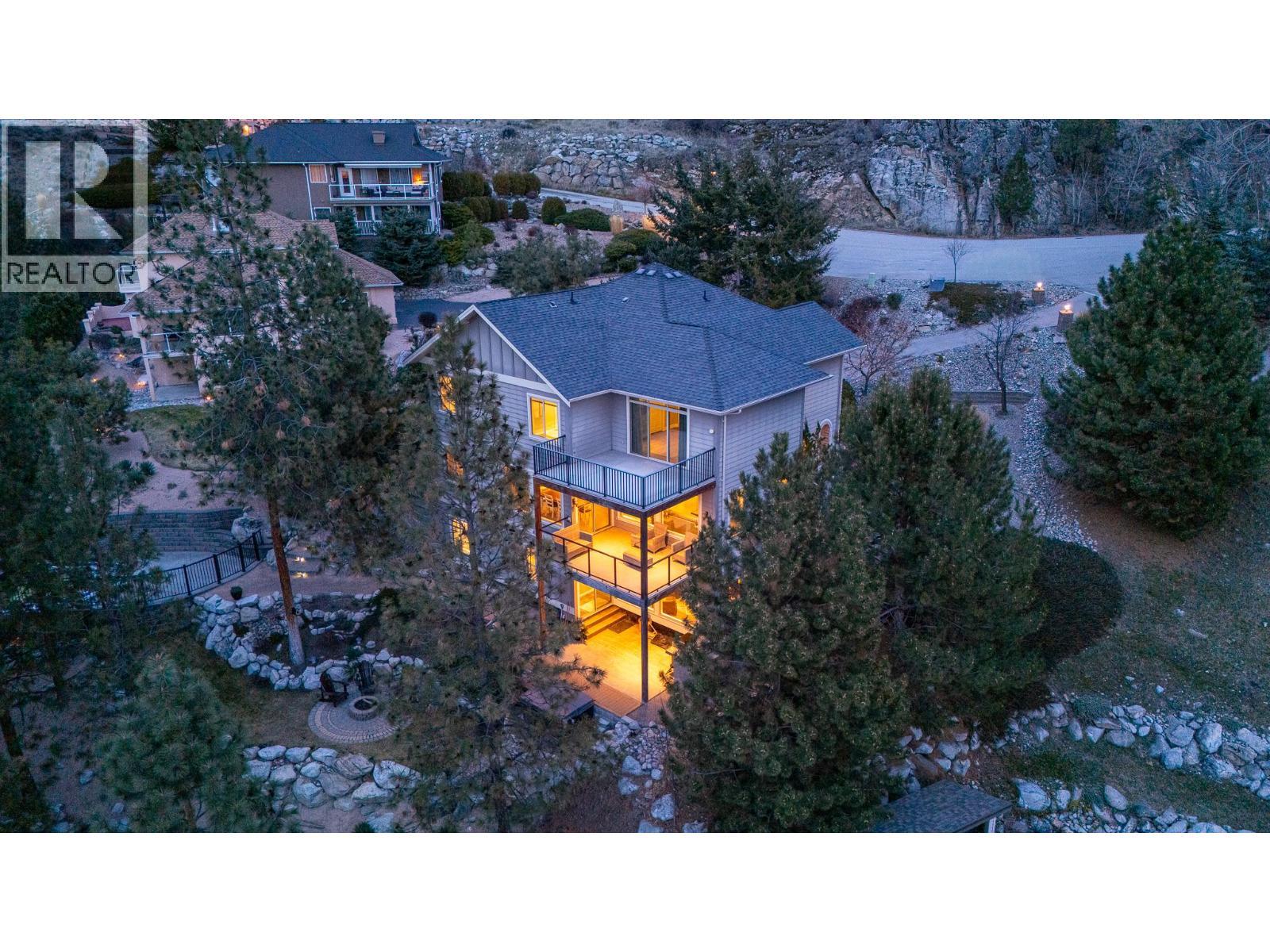 Set on just under an acre of meticulously landscaped grounds, this remarkable three-level home offers rare privacy surrounded by forest and panoramic lake views. Designed to embrace both comfort and entertaining, the residence features four spacious bedrooms, four bathrooms, and a dedicated den—ideal for a home office or quiet retreat. Inside, the home has been tastefully updated with inviting finishes throughout. The main living area is anchored by a warm gas fireplace, creating an elegant yet cozy atmosphere. The walkout lower level expands your living space with a fully equipped wet bar, an expansive recreation room with its own fireplace, and a dedicated wine room—perfect for hosting memorable evenings with family and friends. Step outdoors and experience your own private resort. A shimmering pool, soothing hot tub, fire pit lounge, and tranquil pond are thoughtfully positioned within lush, mature landscaping. Two generous decks and a covered patio offer seamless indoor-outdoor living and multiple vantage points to take in the breathtaking scenery. A double garage provides ample storage, while the home’s intelligent layout ensures functionality meets refined living. Whether entertaining on a grand scale or enjoying quiet evenings overlooking the lake, this property delivers the very best of the Okanagan lifestyle. (id:6769)