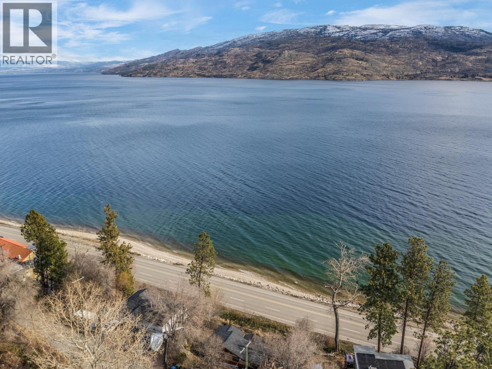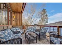 Perched just above the shoreline, this custom built semi waterfront home captures breathtaking, unobstructed lake views that make you feel suspended over the water, with protected sightlines that will never be interrupted. Inside, a distinctive log design pairs beautifully with hardwood flooring, creating warmth and character throughout. Offering 3 bedrooms, 3 bathrooms, and a cozy gas fireplace, the layout is inviting while offering the opportunity to elevate the space to your exact taste. Consider this property the ultimate canvas. Instead of paying for someone else’s finishes, step in and complete it exactly how you envision. The bones are here. The views are here. Now it is ready for your vision. Outdoors, the tiered yard offers flat sections perfect for entertaining areas, gardens, or private lounging spaces, all framed by sweeping lake views. Multiple patios extend from the main living areas so you can take in the scenery from every angle. Additional highlights include parking for four vehicles, highway access to the backyard, and potential to expand. Rare views, rare opportunity. Experience it in person to truly appreciate it. (id:6769)
