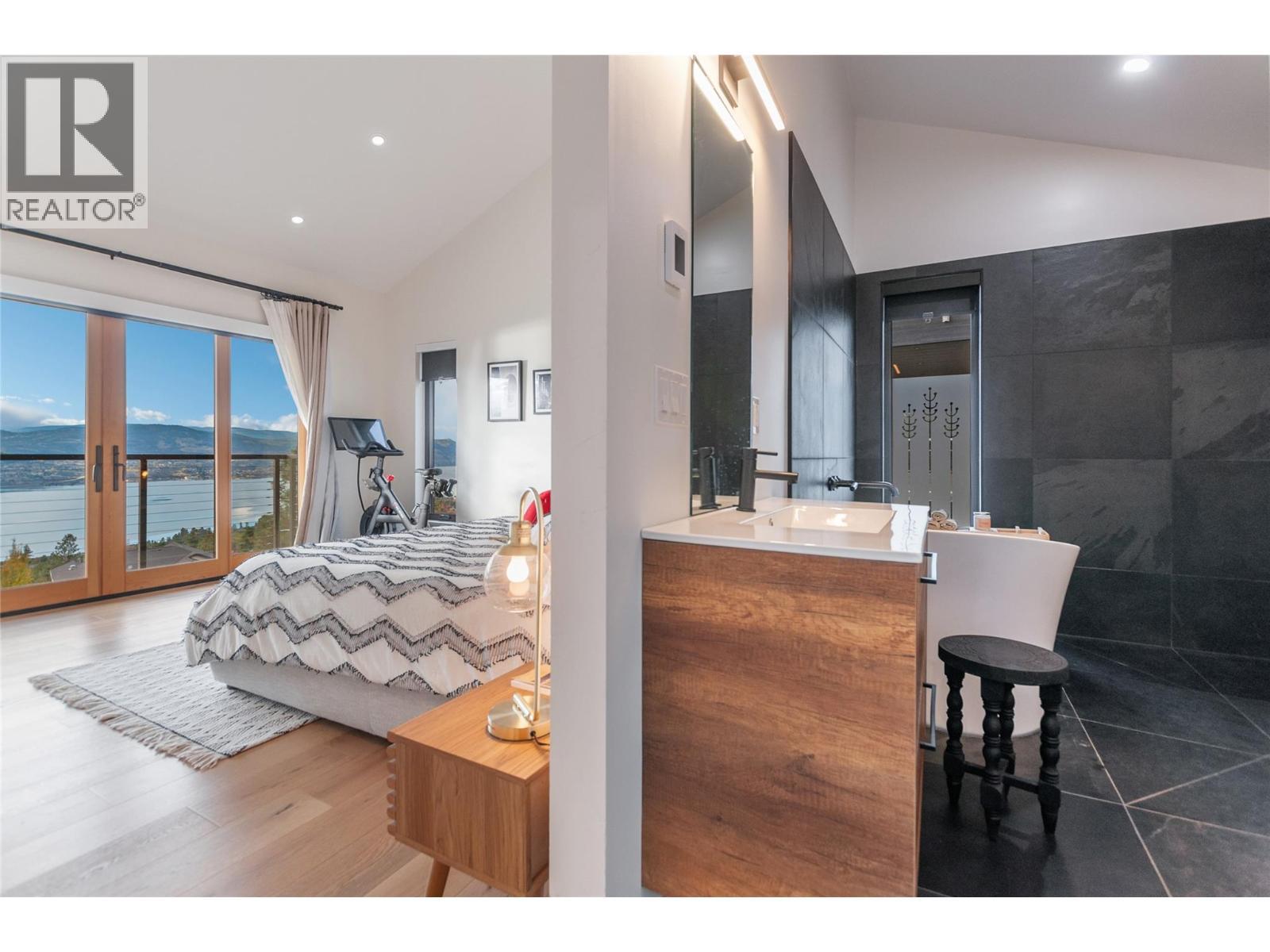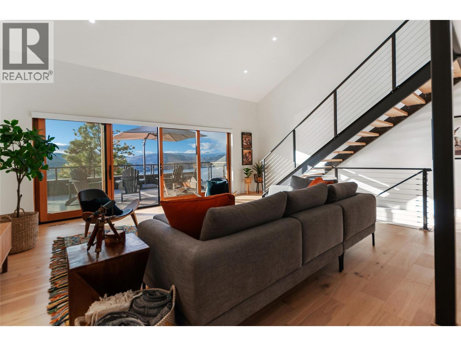 Penthouse Loft meets Okanagan Wine Country! Perched on the Naramata Bench, overlooking the vast beauty of Okanagan Lake, sits this glorious home. Every direction you turn in this magnificent space you are greeted by expansive windows, offering commanding views the region is known for. With an abundance of natural light pouring in, a sunny spot to curl up and enjoy a book or glass of wine can always be found. With 5 bedrooms and 5 bathrooms, the clever layout provides privacy for all. A stunning primary suite with European spa-like bathroom, oversize walk-in closet and private terrace sit on the top level. The heart of the home is the voluminous living room, with 18’ ceilings and a wall of windows seamlessly flowing out to the massive deck, making this the ultimate area for entertaining with friends and family. On the lower level, you will find 2 more bedrooms and a full bathroom. The added bonus of this home are the two self-contained studio suites offering endless possibilities… art space, home office, yoga studio, gym, nightly rentals, etc. The cherry on top, is the location, with close proximity to Naramata Village, multiple beaches, cafe's, fine dining, shops and the Farmers’ Market. Jump on your bike, ride down the street and explore the many award winning wineries along the KVR trail. At the end of the day, this stunning home will envelop you in a comforting hug as you kick back with a bottle of local wine and hear the gentle breeze in the tree-tops whisper “welcome home”. (id:6769)