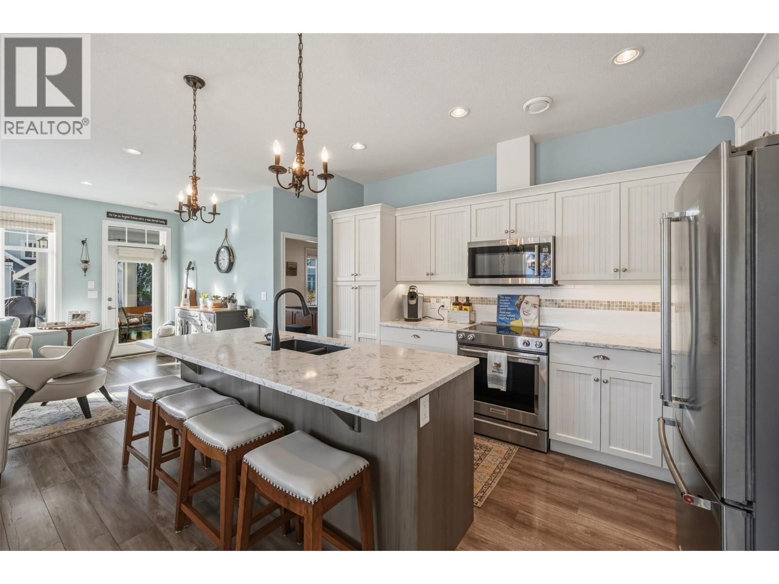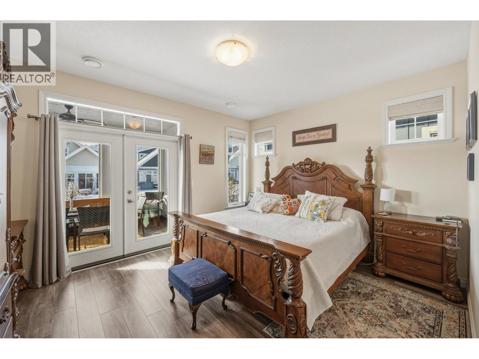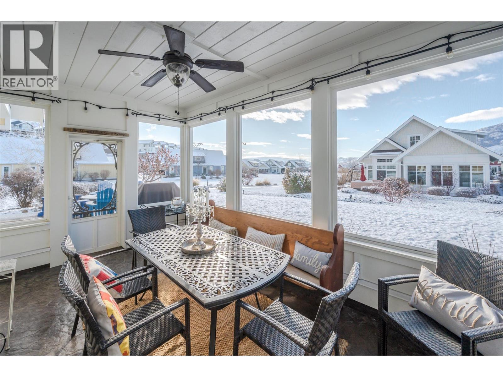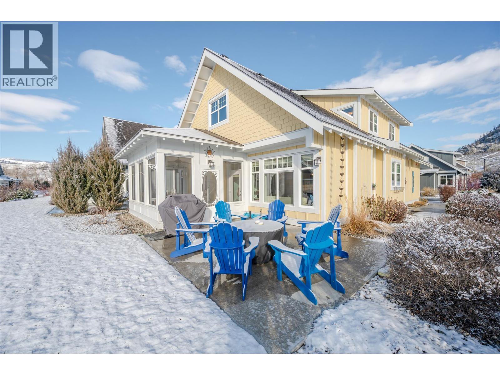 The Cottages on Lake Osoyoos – Burgundy Plan | 4 Bed | 3 Bath | Lake View Welcome to wine country living at its finest in this beautifully appointed 4-bedroom, 3-bath Burgundy Plan home, ideally situated in the sought-after Meadows. With west-facing exposure, lake and mountain views, and just steps to the beach and clubhouse, this property offers the perfect blend of comfort, lifestyle, and investment opportunity. Fresh, modern colours and thoughtful design details give this home a warm, welcoming cottage-inspired feel. The bright, open kitchen features quartz countertops, a wine fridge, and ample cabinetry, flowing seamlessly into the main living space anchored by a cozy electric fireplace—ideal for relaxed evenings and entertaining alike. Step outside to your screened-in patio, perfect for enjoying warm summer nights. The spacious primary suite includes a generous ensuite, while the functional layout provides ample space for family, guests, and friends. Additional highlights include geothermal heating and cooling, a double-car garage, and adjacent to beautiful green space. Located within a secure, gated community, residents enjoy access to an exceptional resort-style amenity package including 1,800 feet of waterfront, over 500 feet of sandy beach, marina, two pools, two hot tubs, fitness centre, clubhouse, night-lit walking trails, playgrounds, and off-leash dog area. Two pets permitted. NO GST | NO PTT | NO EMPTY HOMES TAX | PREPAID LEASE. HOA Fee $600/month (id:6769)