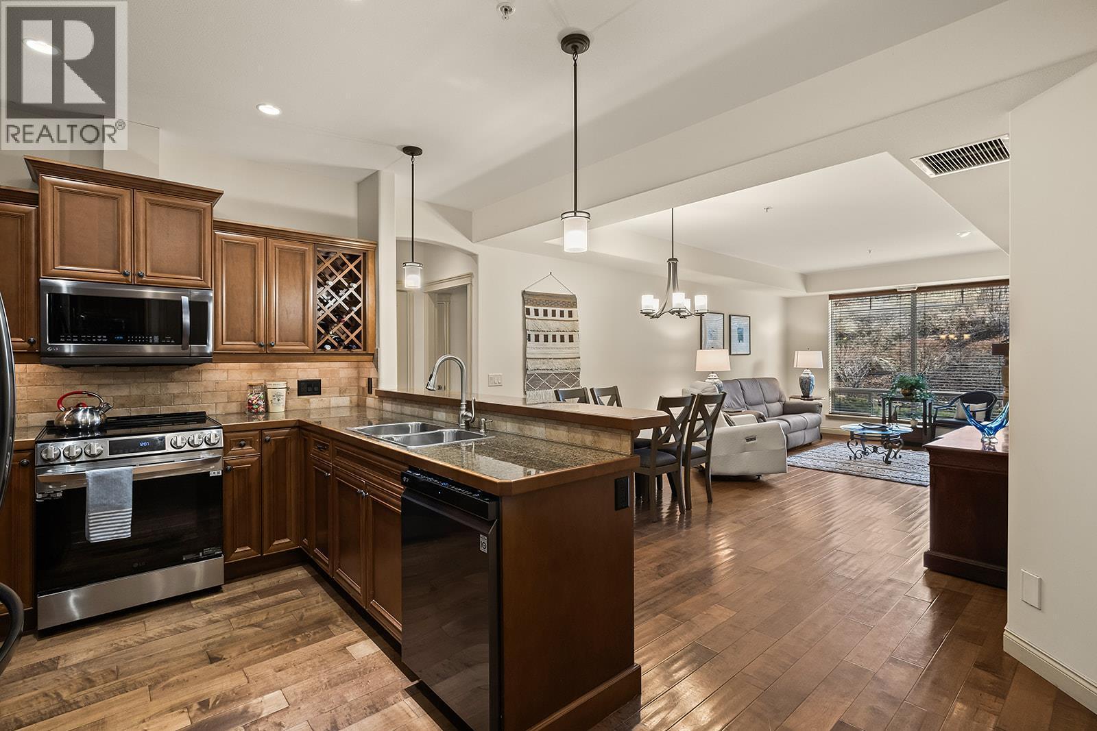 Ground level 2-Bedroom condo at Terravita. Easy, low-maintenance living steps from walking paths and Shannon Lake Golf Course. 1086 sq ft with a bright, open layout that connects the kitchen, dining, and living areas in a natural, comfortable flow with a split bedroom/bathroom floor plan. The primary & second bedrooms are situated on either size of the kitchen, dining and living space making it perfect for guests. The kitchen features granite countertops, a built-in wine rack, pantry, and LG stainless steel double door fridge, opening seamlessly to the dining space and spacious living room with an electric fireplace that anchors the room. The primary bedroom is generously sized with a 4 piece ensuite, while the second bedroom sits near the full main bath for ideal separation and privacy. In-suite laundry is neatly tucked away for everyday ease. This home also comes with 1 parking spot and extra storage space. Step out to your ground level patio, ideal for morning coffee and a small pet, with grassed common areas and a rock mountain backdrop adding to the setting. Close to walking paths, a nearby middle school, and Shannon Lake Golf Course, all in a quiet pocket of Shannon Lake. A smart opportunity for first time buyers or downsizers seeking low-maintenance comfort in a connected community. (id:6769)