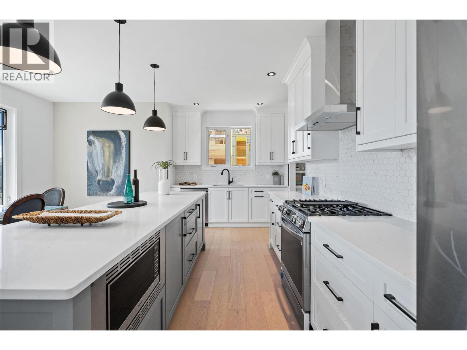 Stunning luxury walkout rancher with unobstructed lake views and a 2-bedroom executive legal suite! Beautifully landscaped with a tiered side yard, retaining walls, and a stamped concrete patio. This incredible home is designed to capture the captivating views and showcases superior finishes throughout. The main level features an open, airy living area with an inviting fireplace with a mantel, custom built-ins, and oversized sliding glass doors that extend seamlessly to the deck. The gourmet kitchen boasts white cabinetry, quartz countertops, and high-end appliances, while gorgeous wide-plank engineered hardwood flooring adds warmth and elegance. The spacious primary suite offers breathtaking views, a walk-in closet, and a spa-inspired 6-piece en suite. A second bedroom, full bath, laundry, and mudroom complete the main floor. The lower level provides an additional bedroom, full bath, and family room for the main home, along with a luxurious 2-bedroom legal suite. The suite includes a modern kitchen, spacious living area, covered patio, and stunning lake views. Located in the Smith Creek West subdivision, this property combines spectacular vistas with easy access to all the amenities of West Kelowna. (id:6769)