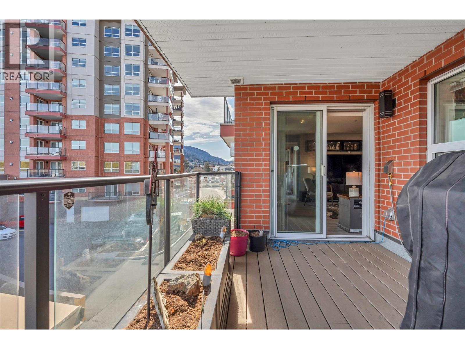 Welcome to the desirable Okanagan lifestyle in this spacious 2-bedroom, 2-bathroom plus den. This home offers 1,223 sq ft of carefree living space in a new steel & concrete condo located just a 5 minute walk to Skaha Lake Beach, Marina, Dragon Boat Pub, parks, wineries, craft breweries and the scenic KVR Trails and cycling routes. The modern open plan layout features a large kitchen with classic white shaker cabinetry, large island with upgraded quartz countertops, upgraded workstation sink, faucet and extra matching kitchen drawers, a 36” refrigerator and a glass-top convection stove. The bright living & dining areas offer room to relax by a cozy gas fireplace and 2 east facing covered decks with mountain views. Storage is abundant with a welcoming foyer and coat closet with upgraded adjustable organizers, separate laundry room off the kitchen and under-sink chrome pullouts. The den is ideal as a home office while the 2nd bedroom and full bathroom provide a comfortable space for family & friends. The primary bedroom retreat features direct deck access, a walk-in closet with upgraded adjustable shelves and a full ensuite with double upgraded sinks, faucets and walk-in shower. The home has hot water on-demand, central A/C, energy-efficient heating, gas BBQ deck outlet and a dedicated, secure inside parking stall, bike room and a same floor storage locker. This well managed strata offers recreation rooms, no age restrictions, 2 pets allowed and long-term rentals are permitted. (id:6769)