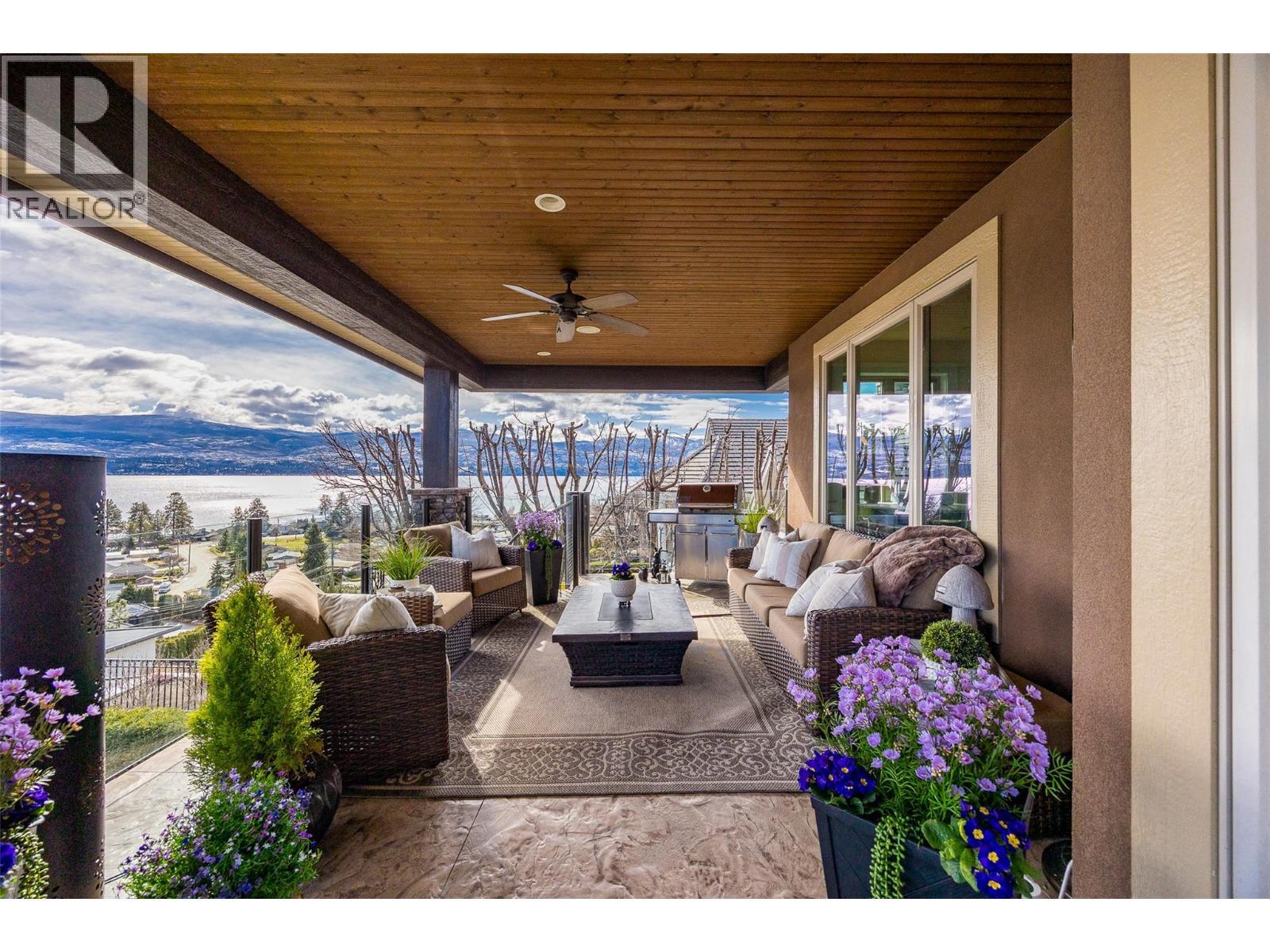 PANORAMIC LAKE VIEWS WITH A BACKYARD BUILT FOR SUMMER! Spend your afternoons by the pool & be downtown in minutes with this custom-built 6 bedroom, 7 bathroom luxury home in Casa Loma! Built to a higher standard, this home features a versatile family floor plan, with space to gather & space to spread out. The main level centres around a great room with soaring ceilings, a cozy fireplace & a wall of windows framing Okanagan Lake. The kitchen and dining areas connect seamlessly, with a large island, gas range + integrated appliances built for entertaining. Step out to the covered balcony & take in 180-degree views of Kelowna. The main floor also includes a primary bedroom with walk-in closet & 4-pc ensuite, a 2nd bedroom + a separate executive office with its own entrance. Laundry, a powder room & pantry keep everyday living easy with direct access to the triple garage. Upstairs, 2 oversized bedrooms sit on opposite wings, each with their own ensuite and walk-in closet, connected by a massive loft overlooking the great room. Downstairs, 2 more bedrooms are separated by a large rec room with wet bar, powder room, 3-pc bath & storage. Ideal for guests, teens or extended family, this is where all the fun happens! Enjoy a custom home theatre, gym & walkout access to the pool deck with hot tub, outdoor bathroom with shower & low-maintenance yard, all set against unobstructed lake & city views. Close to Kalamoir Regional Park & multiple beach accesses, move in & enjoy before summer! (id:6769)