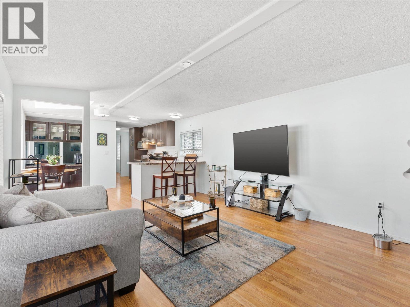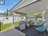 If you have been searching for a turnkey home in West Kelowna that actually delivers a real yard, mountain views, and room to breathe, this is it. Tucked into the welcoming community of West Kelowna Estates, this thoughtfully updated 955 sq ft two bedroom, two bathroom manufactured home punches well above its price point. The smart split floor plan keeps both bedrooms on opposite ends of the home for added privacy, while the open living and dining area flows beautifully with warm laminate floors and an abundance of natural light throughout. The kitchen has been tastefully refreshed with dark wood cabinetry, a breakfast bar, stainless steel appliances, and a stunning skylight overhead that fills the space with Okanagan sunshine year round. Step outside and you will find one of the best yards in the park, fully fenced with a lush lawn, underground sprinkler system, and gorgeous mountain views enjoyed from a covered deck perfect for morning coffee or evening entertaining. A separate shed provides extra storage or workshop space, there is parking for multiple vehicles, and in suite laundry makes everyday living easy. Forced air natural gas heating and central air conditioning keep you comfortable in every season. Located just over the bridge and just minutes from downtown, with easy access to shopping, schools, and recreation. Pets welcome with park approval and pad rent is $700 per month with the WFN lease secured until 2057. Call today to book your showing. (id:6769)