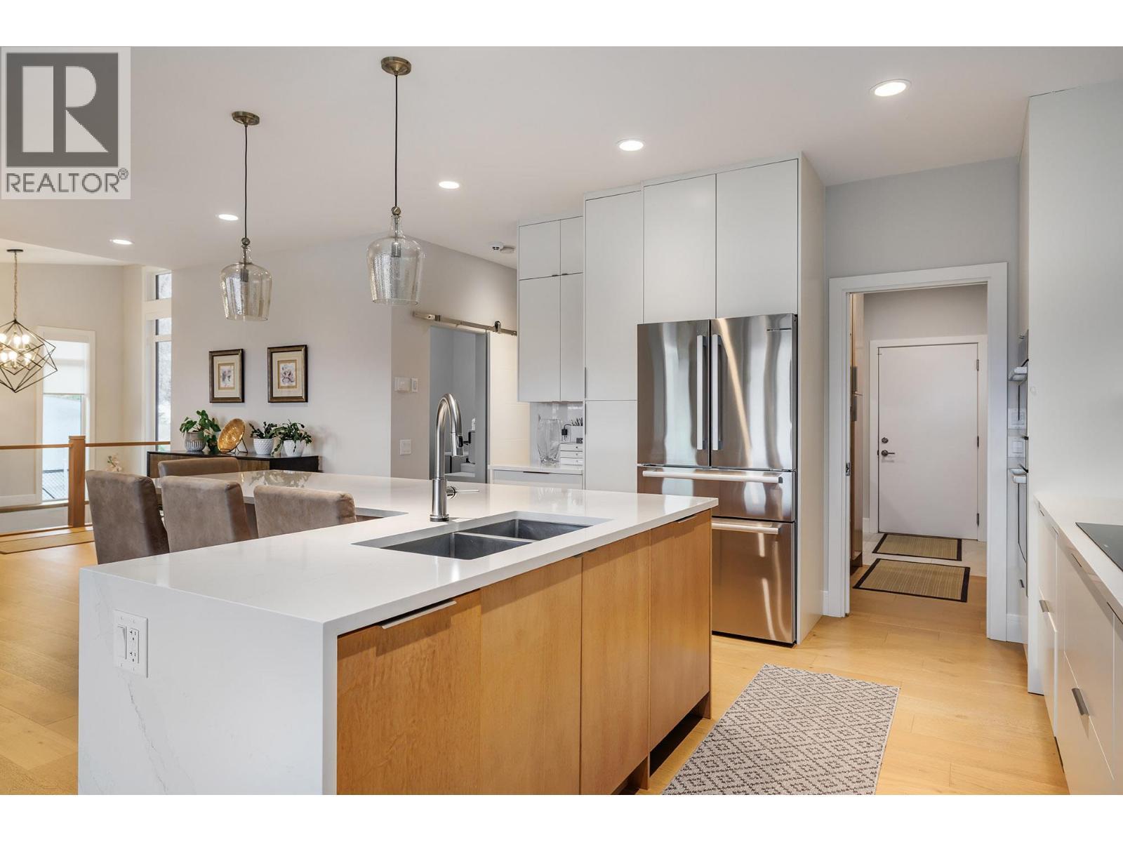 This impeccably built modern residence is designed for elevated main level living while offering the versatility of a lower level ideal for guests or a high earning AirBnB opportunity. Thoughtfully crafted to maximize light, flow, and functionality, the home delivers a rare blend of luxury, comfort, and investment potential. The main floor features a bright open concept kitchen with high end finishes and oversized windows that flood the home with natural light. The primary suite is conveniently located on the main level and offers a spa inspired ensuite with generous proportions. An office, laundry room, and covered deck complete the main floor and enjoy peaceful morning sunrises. The walk out lower level is perfectly suited for extended family or short term rental use, offering two large bedrooms each with its own ensuite, including one that rivals the primary suite. A dining and prep area with a large island and seating creates a welcoming space. Step outside to the private backyard, where a juniper hedge provides privacy and a tranquil hot tub setting. Multiple outdoor living spaces include a stone patio with pergola and additional seating areas with breathtaking vineyard and valley views. Ideally located within walking distance to the beach, vineyards, and the renowned Frind Winery, North America’s only waterfront winery, offering dining, live music, yoga, events, and a boat up experience. A rare opportunity for luxury living with exceptional income potential. (id:6769)