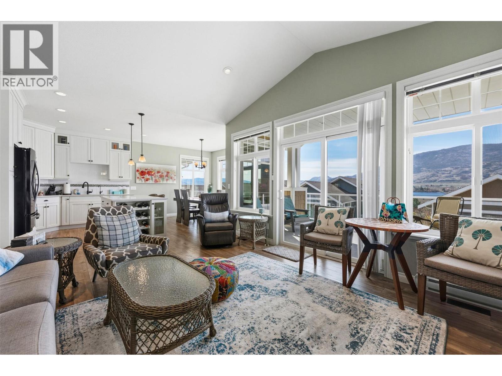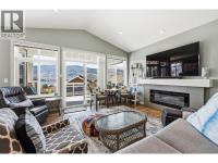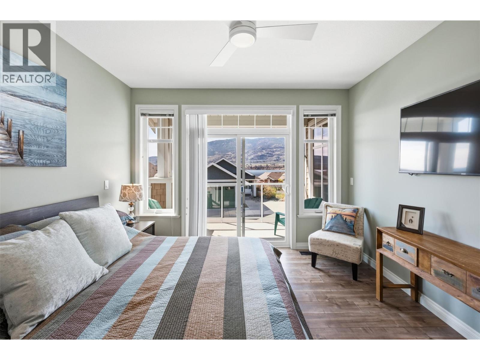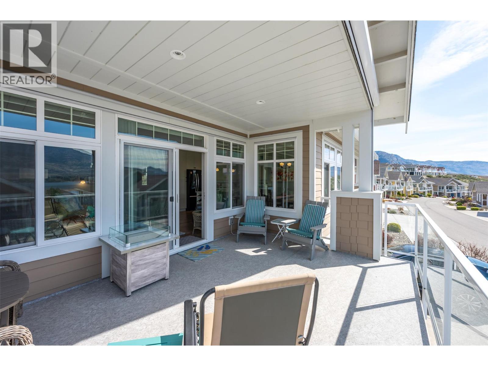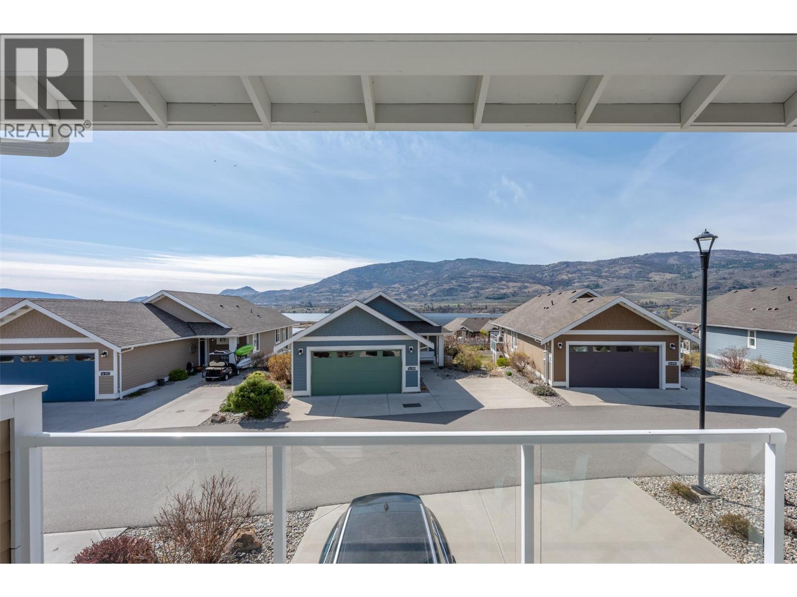 Welcome to The Cottages on Lake Osoyoos—this beautifully maintained Shiraz Plan offers 4 bedrooms, 3 bathrooms, and 1,933 sq ft of bright, modern living with stunning lake, mountain, and valley views. With desirable west-facing exposure, enjoy breathtaking sunsets from the spacious sundeck, complete with an electric UV sun screen, or relax on the east-facing patio and enclosed sunroom for seamless indoor/outdoor living. The open-concept upper level is ideal for entertaining, featuring a stylish kitchen with quartz countertops, ample cabinetry, and a generous living area with a Napoleon electric fireplace, built-in SONOS sound system, and 75” TV. The primary suite includes a walk-in closet & a spacious ensuite with an oversized shower. A custom office easily converts to a 4th bedroom. Lower level offers excellent guest accommodation with a bedroom, full bath, and laundry room. Additional features include geothermal heating/cooling, water softener, filtration system, and parking for up to 6 vehicles. Being sold fully furnished, including housewares, linens, electronics (4 wall mounted TVs), and a golf cart, this home is truly turnkey. Located in a secure, gated, resort-style community with 1,800 ft of waterfront, sandy beach, marina, pools, hot tubs, gym, clubhouse, and more. No age restrictions, 2 pets permitted, and short-term rentals allowed—ideal for personal use or investment. No GST, PTT, or Vacant Homes Tax. Quick possession available. (id:6769)