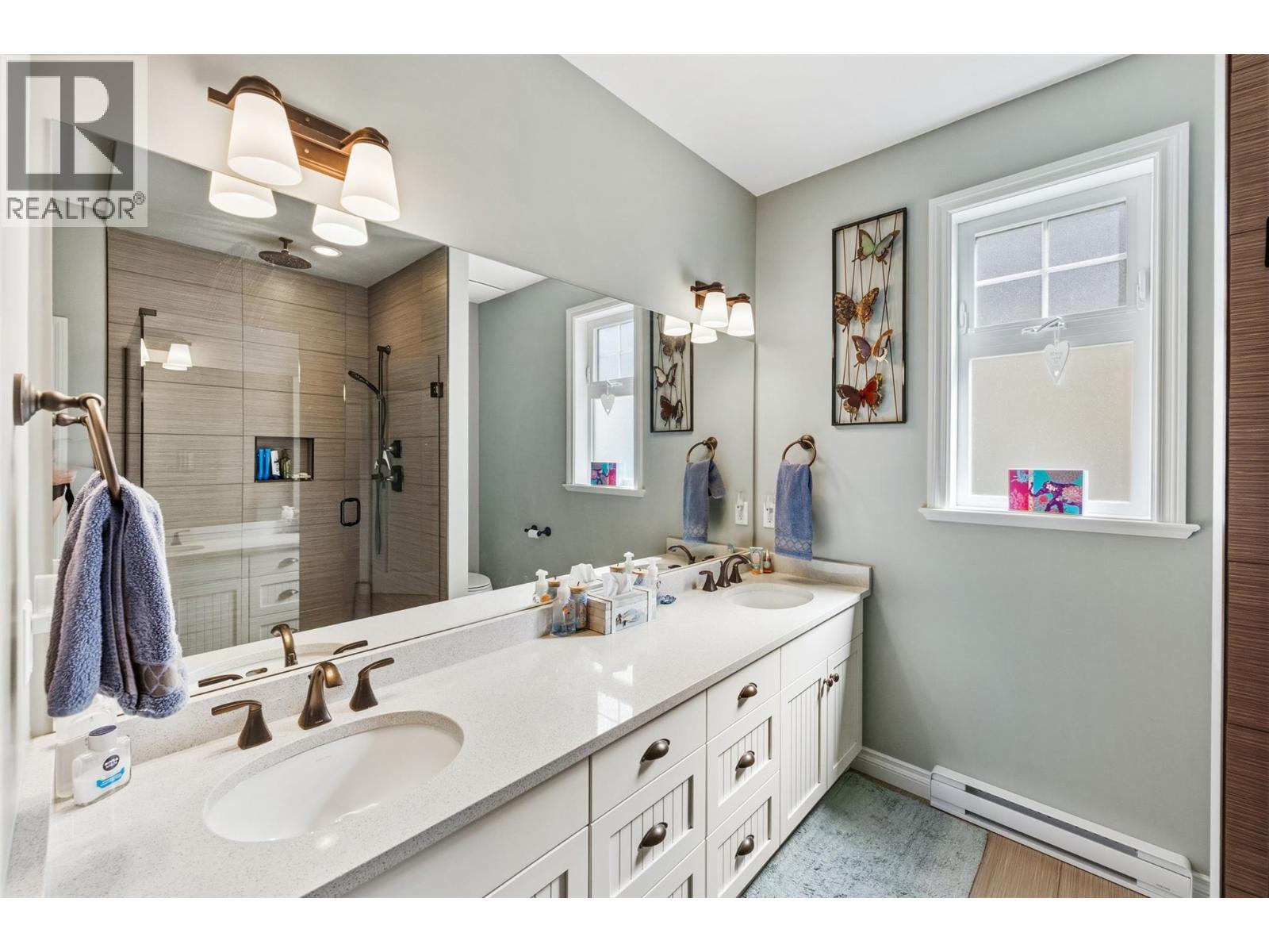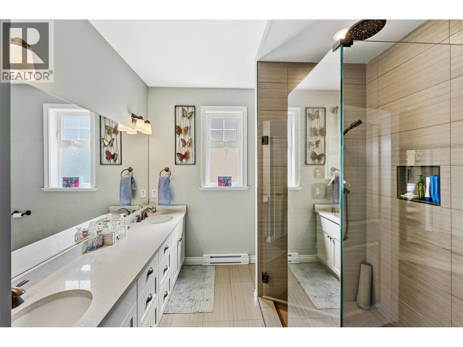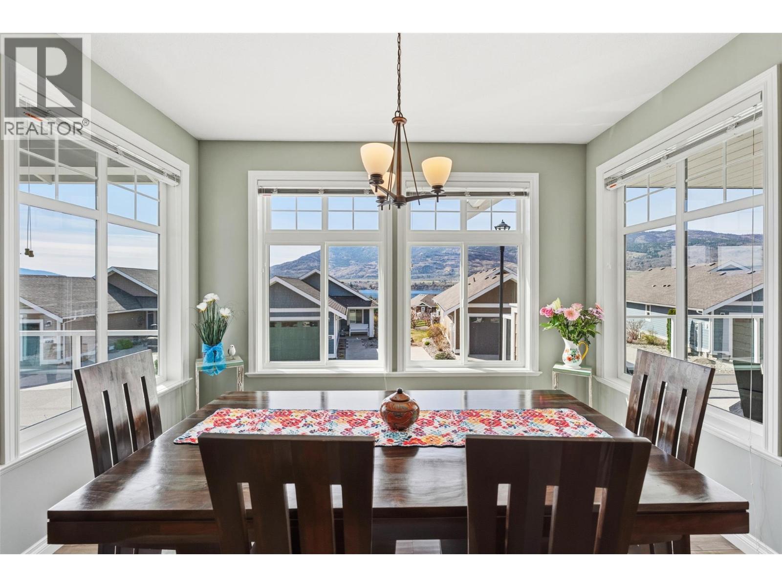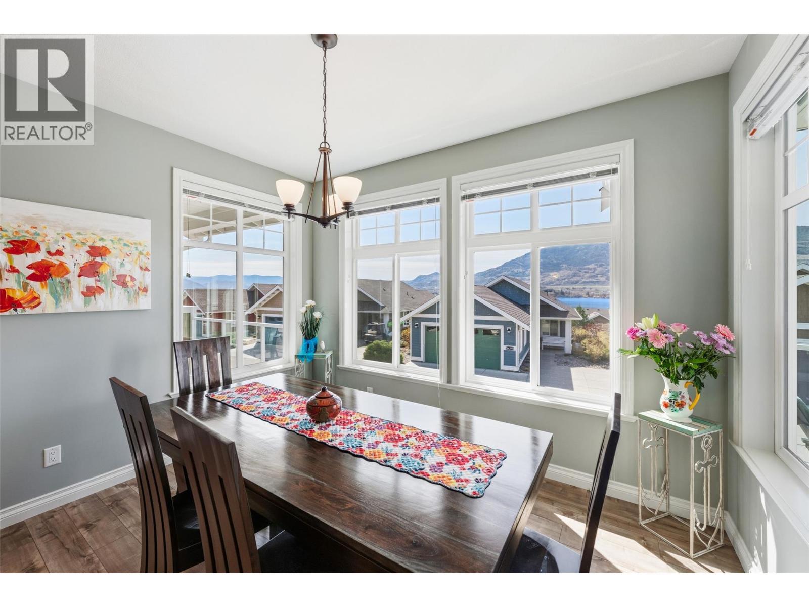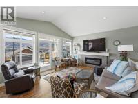 Welcome to The Cottages on Lake Osoyoos—this beautifully maintained Shiraz Plan offers 4 bedrooms, 3 bathrooms, and 1,933 sq ft of bright, modern living with stunning lake, mountain, and valley views. With desirable west-facing exposure, enjoy breathtaking sunsets from the spacious sundeck, complete with an electric UV sun screen, or relax on the east-facing patio and enclosed sunroom for seamless indoor/outdoor living. The open-concept upper level is ideal for entertaining, featuring a stylish kitchen with quartz countertops, ample cabinetry, and a generous living area with a Napoleon electric fireplace, built-in SONOS sound system, and 75” TV. The primary suite includes a walk-in closet & a spacious ensuite with an oversized shower. A custom office easily converts to a 4th bedroom. Lower level offers excellent guest accommodation with a bedroom, full bath, and laundry room. Additional features include geothermal heating/cooling, water softener, filtration system, and parking for up to 6 vehicles. Being sold fully furnished, including housewares, linens, electronics (4 wall mounted TVs), and a golf cart, this home is truly turnkey. Located in a secure, gated, resort-style community with 1,800 ft of waterfront, sandy beach, marina, pools, hot tubs, gym, clubhouse, and more. No age restrictions, 2 pets permitted, and short-term rentals allowed—ideal for personal use or investment. No GST, PTT, or Vacant Homes Tax. Quick possession available. (id:6769)