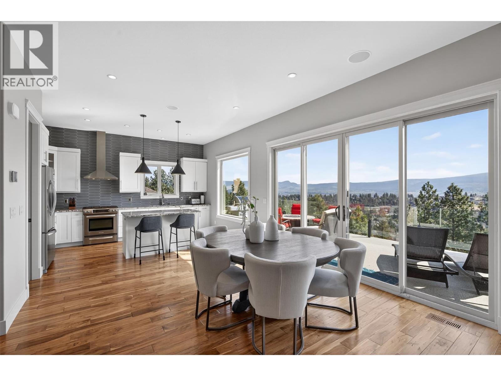 HOME THEATER, POOL TABLE & FURNITURE PACKAGE, VALUED OVER $20,000.00, INCLUDED FOR AN ACCEPTED OFFER WITHIN 30 DAYS. Executive walk-out rancher in Aurora Heights West Kelowna, built for entertaining. Unobstructed city, mountain & valley views from every level. 3,533 sqft of high-end finished living space + 925 sqft unfinished bonus area (workshop, storage, or future use). Main floor features 10 ft ceilings w/ 12 ft tray. Kitchen built for hosting w/ granite counters, SS appliances & large walk-in pantry. Premium finishings include Acacia hand-scraped engineered hardwood & heated travertine/marble tile in all baths. Primary bedroom captures the views w/ direct deck access. Ensuite offers large travertine/marble walk-in shower, frameless glass & granite vanity w/ dual sinks. Expansive deck w/ topless glass railings & natural gas fire table. Lower level is built to entertain: theater room, custom bar w/ granite counters, dishwasher, TV & LED-lit shelving. Games area w/ pool table, granite accents & gas fireplace. Whole-home audio: 26 built-in speakers, 13 zones. Oversized heated garage w/ 11 ft ceilings, insulated doors, upgraded lighting, vacuum outlet & sink. High-end mechanical: furnace, heat pump, hot water tank, humidifier, alarm & built-in vacuum. Only minutes to downtown Kelowna & Okanagan Lake while located in a quiet gated community, designed for privacy. (id:6769)
