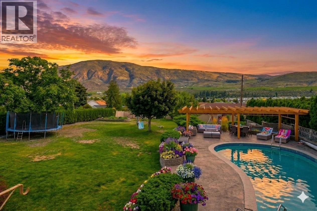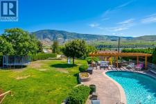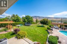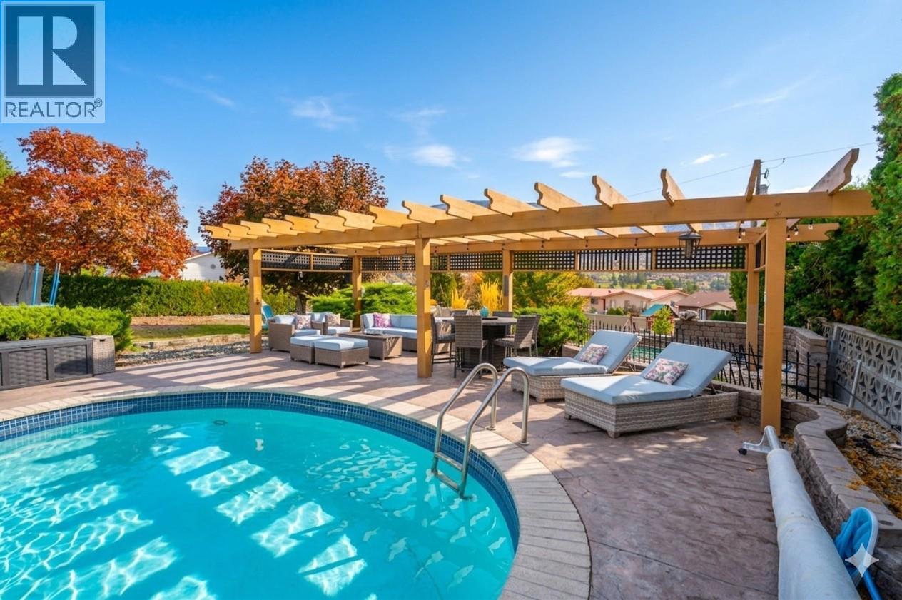Rarely do you find a 0.50-acre private sanctuary that perfectly balances resort-style living with breathtaking panoramic views. This expansive property is the ultimate outdoor retreat, featuring a heated saltwater pool framed by stamped concrete and a landscaped patio with a custom pergola. Surrounded by vinyl fencing and mature cedars, the backyard offers total seclusion. The RS1 zoning and dual property access provide exciting potential for a carriage house or secondary suite. With dedicated RV/boat parking, this lot is designed to accommodate every hobby and toy.The home itself is a renovated masterpiece designed to showcase the sweeping vistas of the town, mountains, and vineyards. The main floor features an open-concept layout where oversized windows flood the space with natural light. A dramatic wood beam and custom rock fireplace add warmth to the living area, while the dining room boasts its own cozy fireplace and leads out to a covered deck for seamless indoor-outdoor hosting. With four bedrooms—including three on the upper level and one on the main—the floor plan is ideal for growing families. The spa-inspired main bathroom impresses with marble tile, jetted tub, and walk-in rain shower. Downstairs, the full daylight basement offers walk-out access, a workshop, and a tiled three-piece bath, making it an easy candidate for a suite conversion. This is more than a home; it is a lifestyle! *Some photos virtually staged.* (id:6769)