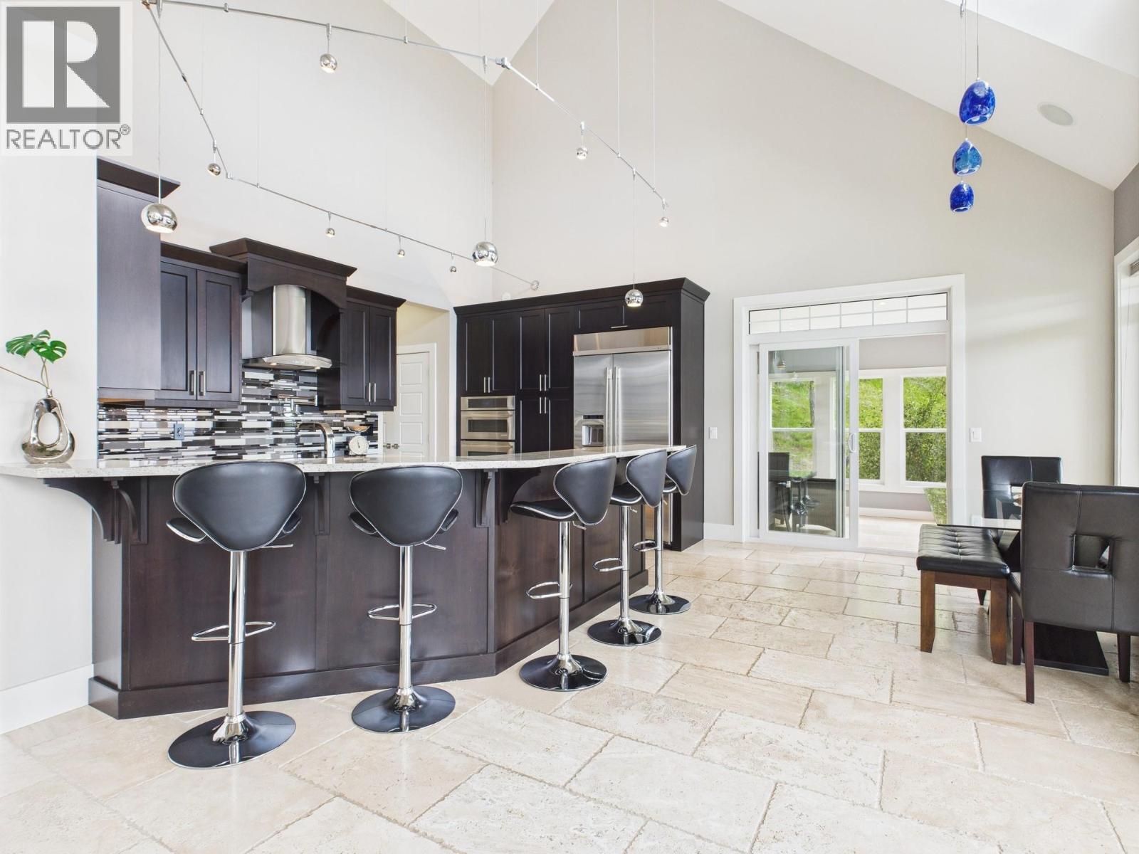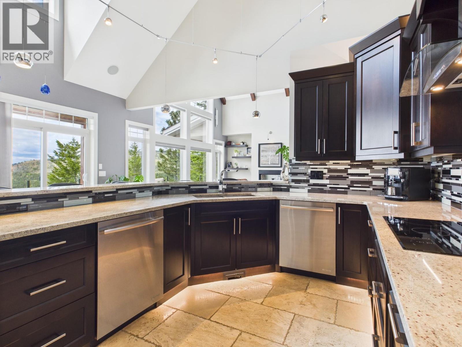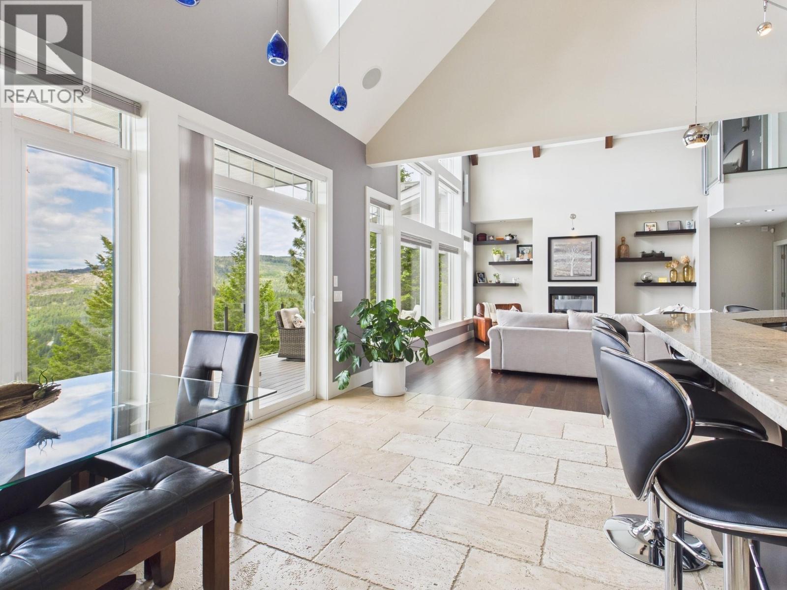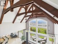 This is the ONE! An Exceptional Gated Executive Home, fully landscaped and designed with uncompromising attention to detail. This stunning residence features soaring 20-ft beamed ceilings on the main floor, rich hardwood flooring, and heated travertine tilework throughout. The expansive great room is the heart of the home, showcasing a striking double-sided fireplace, features 2 master suites and breathtaking panoramic views of the mountains and lake. The home is kept cozy with Radiant in-floor heating, with heat pump and has bonus additional 3 seasonal indoor/outdoor living space. The chef-inspired kitchen seamlessly blends beauty and functionality, complete with a walk-in pantry, dual dishwashers, Jenn Air appliances- Induction Cooktop, perfect for both everyday living and entertaining. The main primary suite offers a true spa-like retreat, featuring a luxurious soaker tub, walk-in shower, dual vanities, and spacious walk-in closets. The main floor is thoughtfully completed with an office, an elegant powder room, and a well-appointed mudroom with laundry. The fully finished walk-out basement is designed for entertaining, offering a large recreation and games room with a wet bar, an additional bedroom, a gym, a full bathroom, and ample storage space. Step outside to your beautifully landscaped backyard oasis, complete with a putting green and hot tub. This exceptional property offers the perfect blend of refined luxury, modern comfort, and an unparalleled lifestyle. (id:6769)