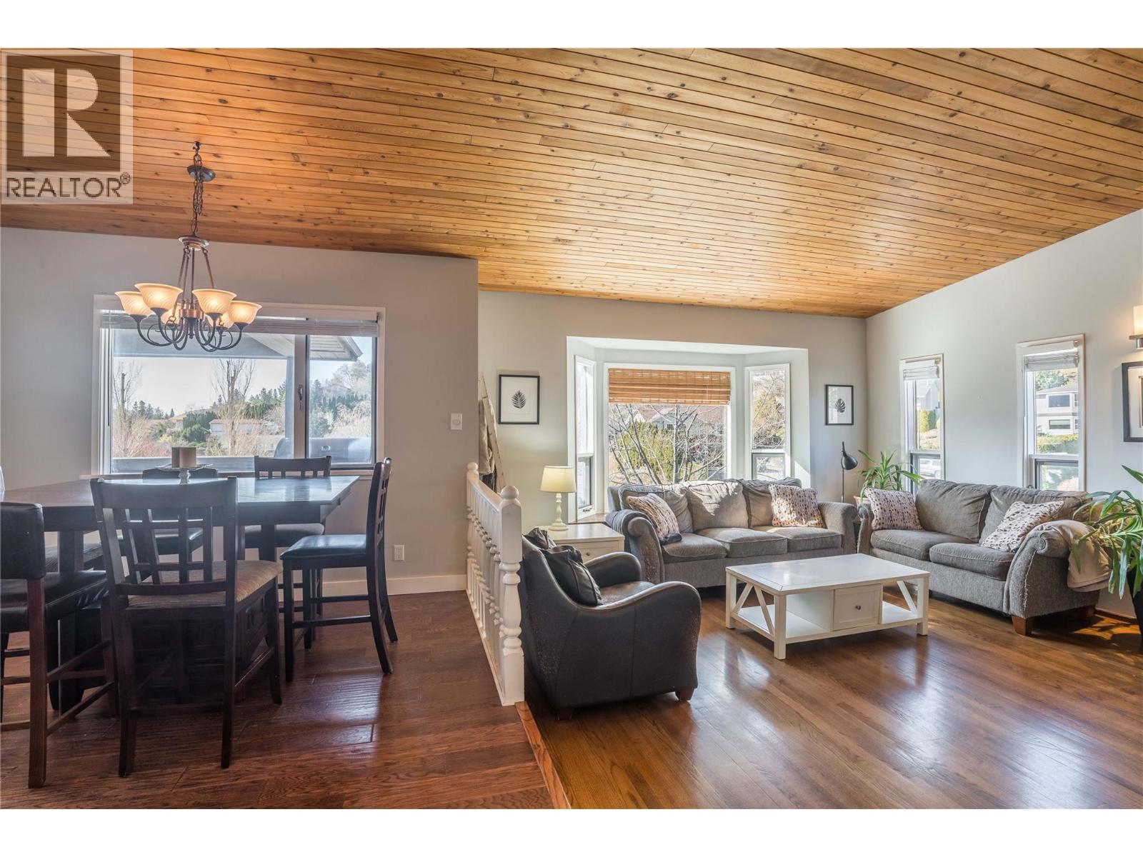Welcome to this exceptional 4–5 bedroom family home set on a 0.37-acre lot, offering incredible outdoor living. The fully remodeled lower-level features vinyl plank flooring, a modern 3-piece bathroom with walk-in shower, a separate laundry room with added cabinetry and sink, plus two bedrooms and a spacious rec room complete with a gas fireplace. Upstairs, you’ll find an open-concept main living area with vaulted ceilings, engineered hardwood flooring, and plenty of natural light. The primary suite includes an updated 3-piece ensuite & walk-in closet, while two additional bedrooms provide flexibility—perfect for a growing family, nursery, or home office. The functional kitchen and dining area flow seamlessly onto a fully covered deck for seasonal use. Step outside to your private backyard oasis featuring a fully fenced yard, multiple patio spaces, a hot tub, and a stunning 14' x 28' heated saltwater pool (installed by Fun Water in 2020)—perfect for entertaining and cooling off in the summer. For safety and efficiency, the pool also boasts a powered auto cover with a secure keypad function to access. There’s also ample storage, a garden area, and underground irrigation. High-efficiency furnace, central air conditioning, and central vacuum. Plenty of parking for all the toys, plus a single garage with workshop/storage space and an attached carport. Homes like this are rare—book your private showing today and you could soon be living the Okanagan lifestyle at it’s best. (id:6769)