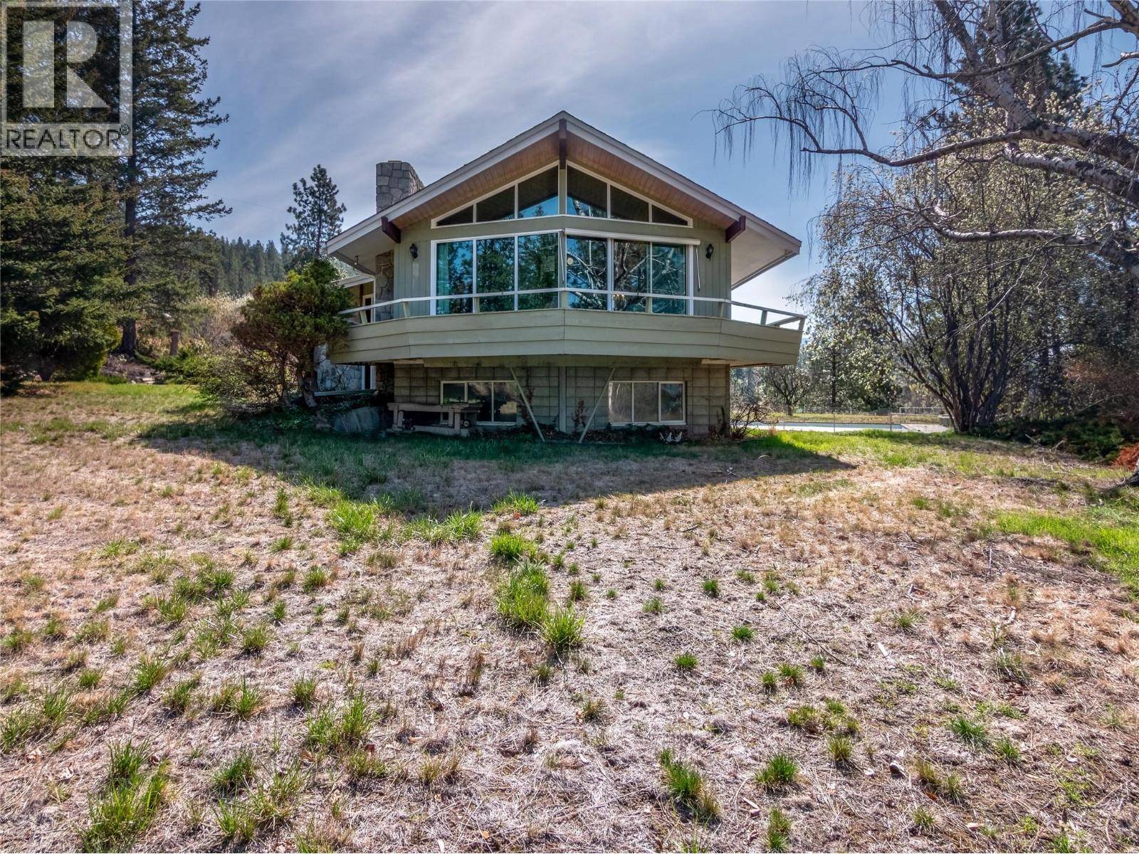 If you’ve been looking for something one of a kind, this rare untouched mid-century home is the dream project! Built in 1967 this stunner sits on 6 private acres on the Naramata Bench with 180 degrees of panoramic views. With some current privacy from the trees your selective tree removal can open up your lake views to the extend of your desire. What’s so rare about this home is all its unreal original features remain untouched – soaring vaulted ceilings clad in wood, wood lined walls, architectural designs, original slate floors, unpainted built ins, stone accents & more. The main floor has a gorgeous open living & dining in the peak of the vaulted ceilings, with views & deck access & a stunning stone fireplace. The kitchen is just waiting for your design & faces South looking down the lake & across the back yard & the old pool area. The primary bedroom on the main floor has an attached ensuite, & across the hall is the gorgeous den with its own fireplace & original built ins. The walk out lower level of the home is a blank slate ready for your vision, there is a huge open rec room with a kitchenette, 2 bedrooms together by the updated bathroom, + a 3rd bedroom full of original charm. The home is attached to a double car garage but there’s room to build a detached shop or garage and tons of parking. The land is totally private with mature trees, & not in the ALR. The space has endless potential and the sprawling back yard has an old in ground pool awaiting revival. Must see! (id:6769)